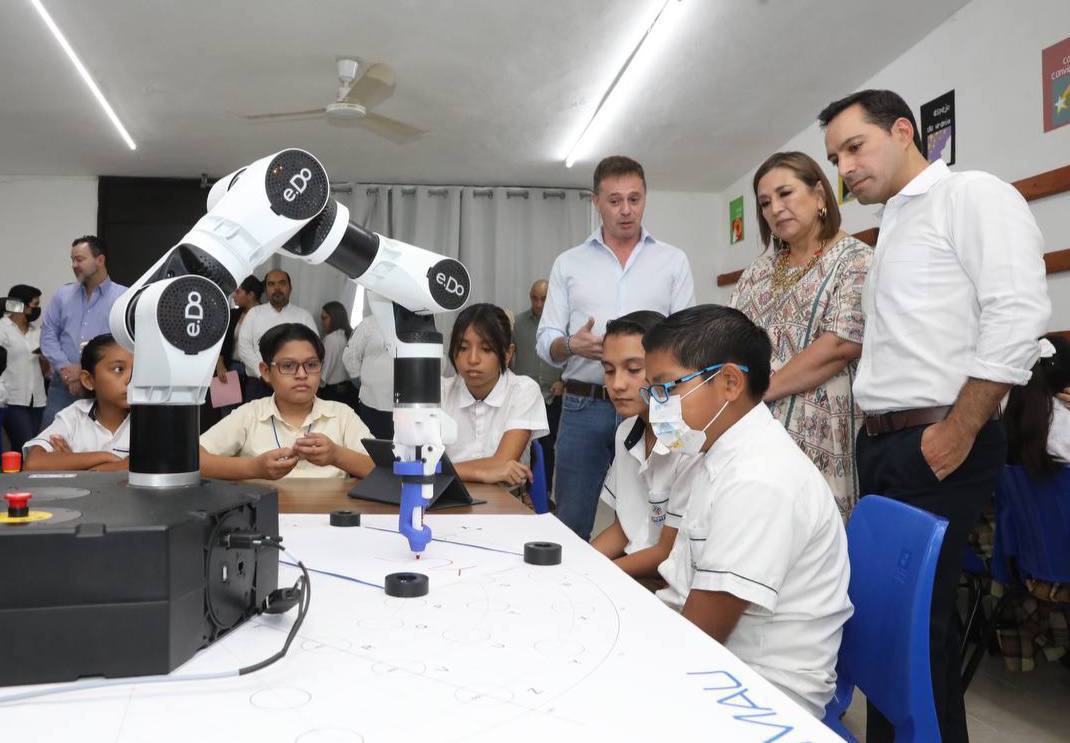 El Gobernador Mauricio Vila Dosal presentó a la senadora Xóchitl Galvéz el programa piloto Clases de Robótica para Educación Básica, primero en su tipo en Latinoamérica, que busca fomentar el interés y la pasión por la tecnología entre alumnos de escuelas públicas de Yucatán, para desarrollar habilidades prácticas y técnicas, que les permitan prepararse para futuras carreras en este campo.