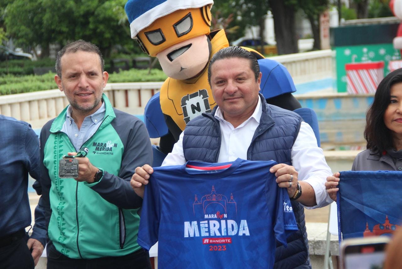 Teniendo como escenario la fuente monumental del Parque de las Américas, el Ayuntamiento de Mérida, en coordinación con AsDeporte, presentó la playera oficial y medalla conmemorativa del Marat’hon Mérida Banorte 2023, que se llevará a cabo el domingo 8 de enero, con salida y meta en el Monumento a la Patria, a partir de las 05:30 de la mañana.