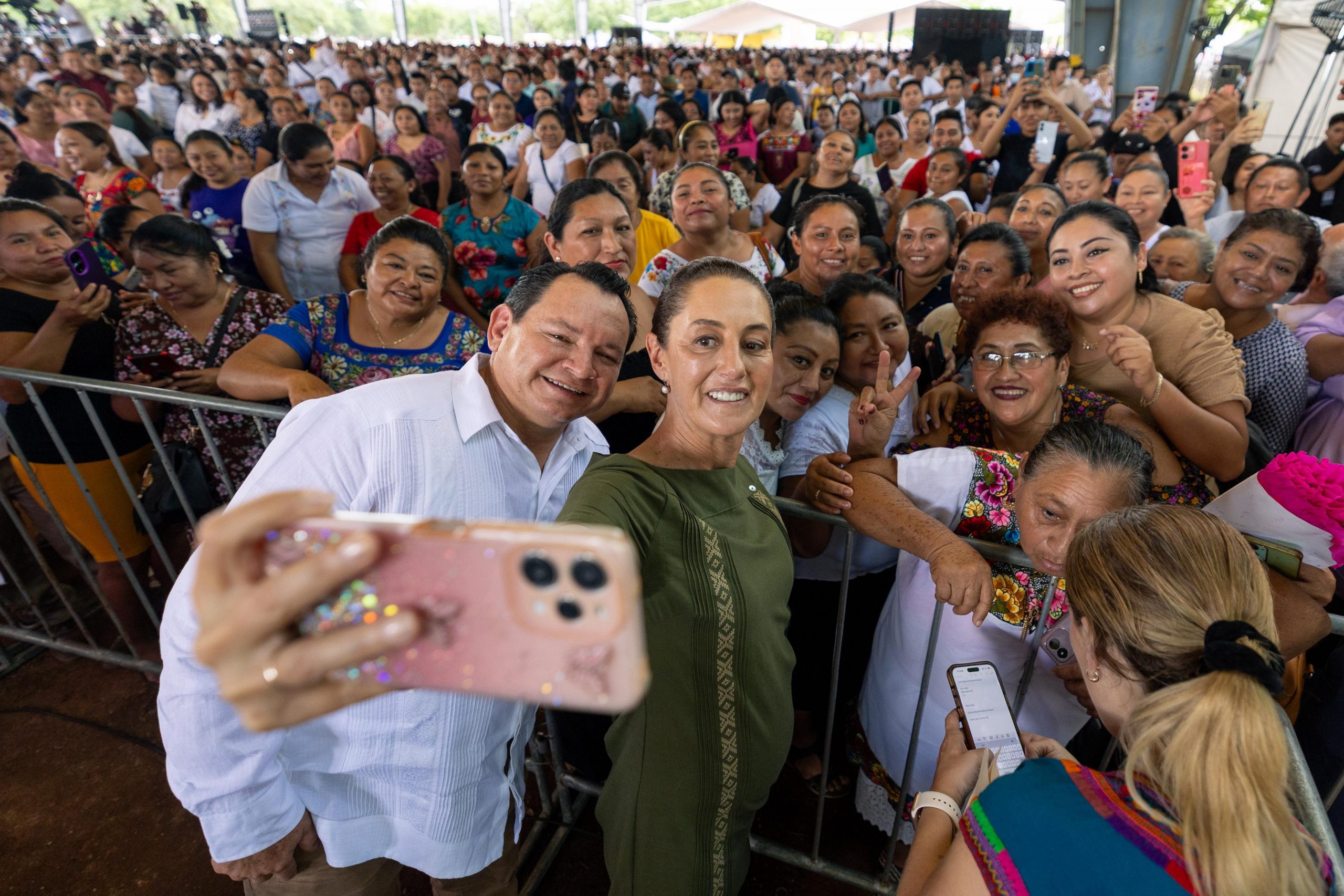 Por su parte, el Gobernador Joaquín Díaz Mena expresó el orgullo de recibir a la primera Presidenta de México en Yucatán, subrayando el carácter histórico de este momento para la República.