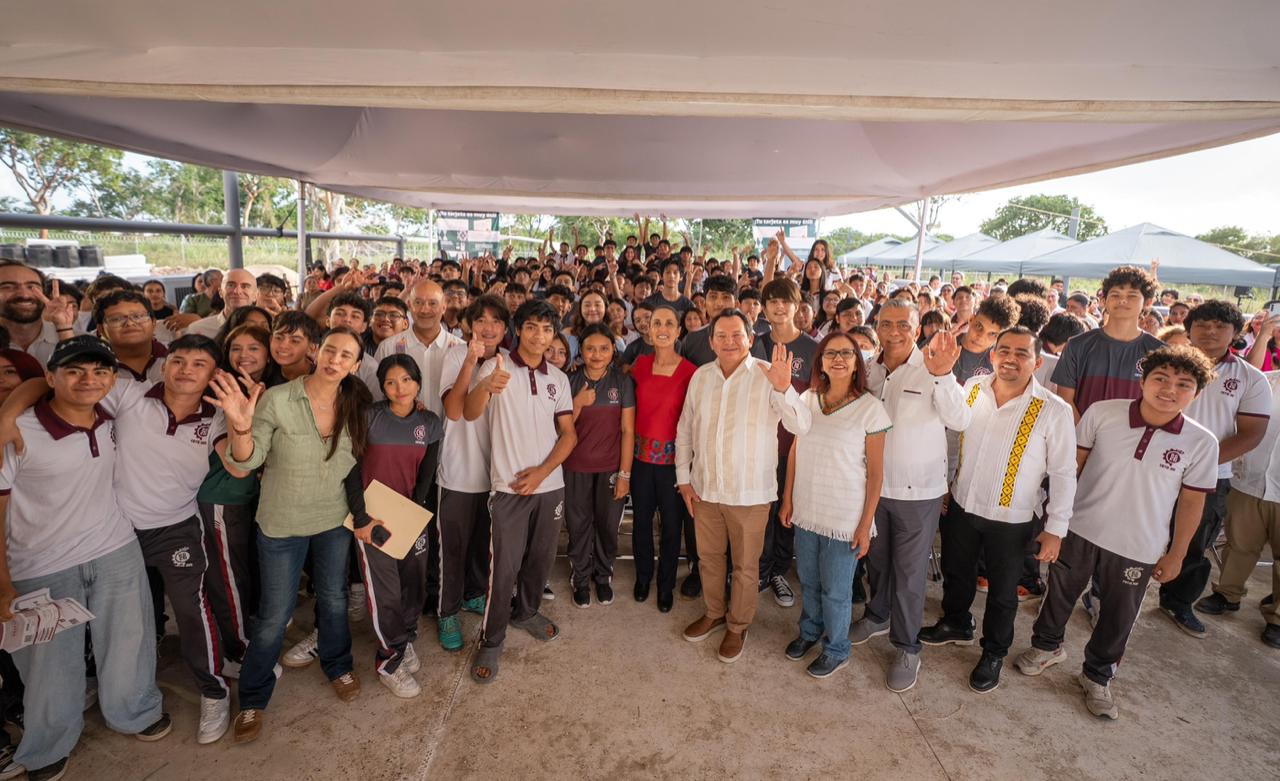 Durante su gira por Yucatán, la Presidenta de México, Claudia Sheinbaum Pardo, y el Gobernador Joaquín Díaz Mena desarrollaron una agenda de trabajo que incluyó la entrega de tarjetas del Bienestar a estudiantes beneficiarios de la Beca Benito Juárez del Cbtis 305 de Ciudad Caucel, así como la supervisión de la construcción del nuevo edificio que albergará a este plantel, ubicado al poniente de Mérida.
