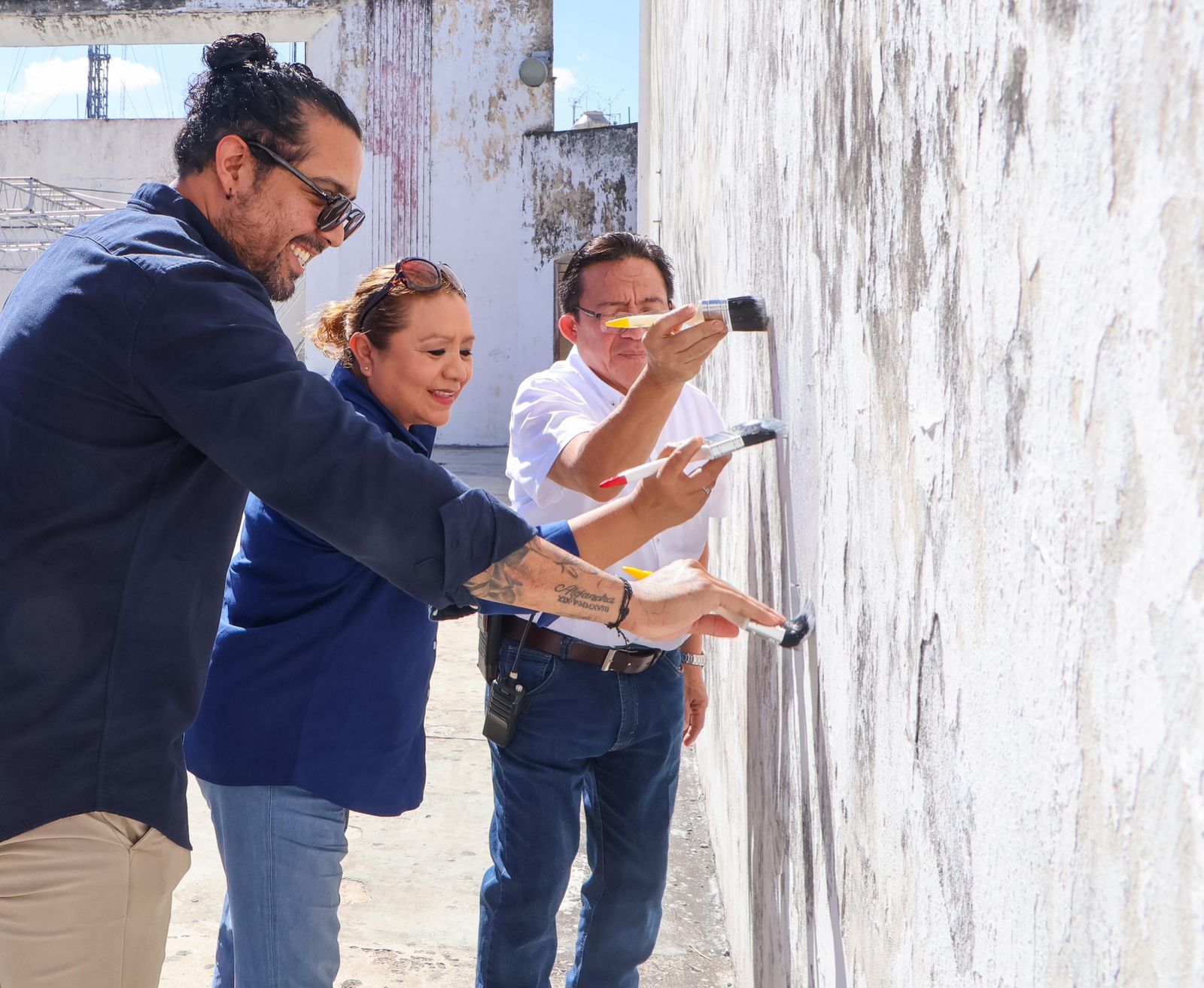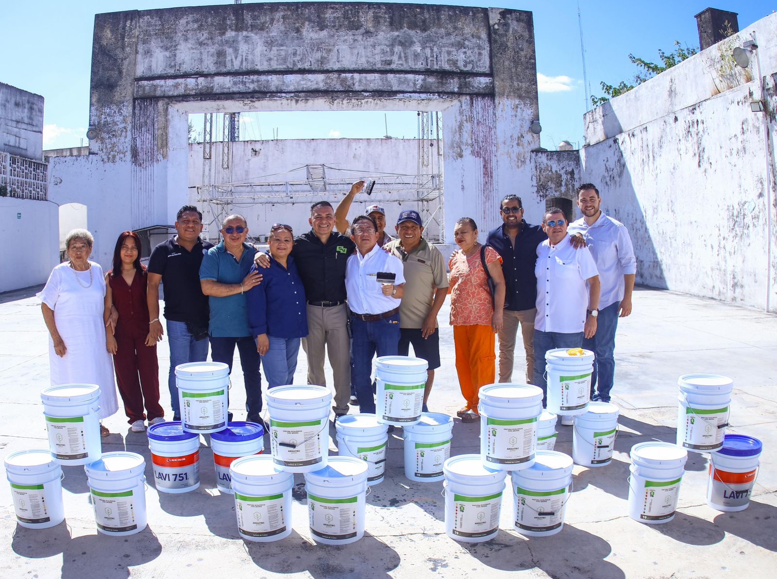 En la jornada inicial de la estrategia social “Juntos Nos Ayudamos”, del colectivo “Sociedad Valiente”, Sergio Vadillo Lora entregó pintura a la Unión de Mercados y Baratilleros de Yucatán.