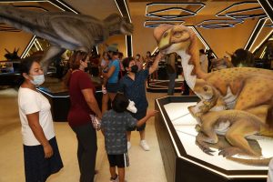 En la sala de videomapping, las y los visitantes escucharon y vieron sobre los dinosaurios que poblaron la tierra hace cerca de 60 millones de años y sus distintos tipos de especies; después, tras regresar del punto cero donde todo comenzó, ingresaron a la sala de la actualidad en donde les enseñaron cuál es el proceso para poder exhibir los fósiles de un dinosaurio y finalmente, en la sala Laboratorio, interactuaron con 7 ejemplares de recreaciones de dinosaurios de especies como Dilophosaurus y Tyrannosaurus Rex.