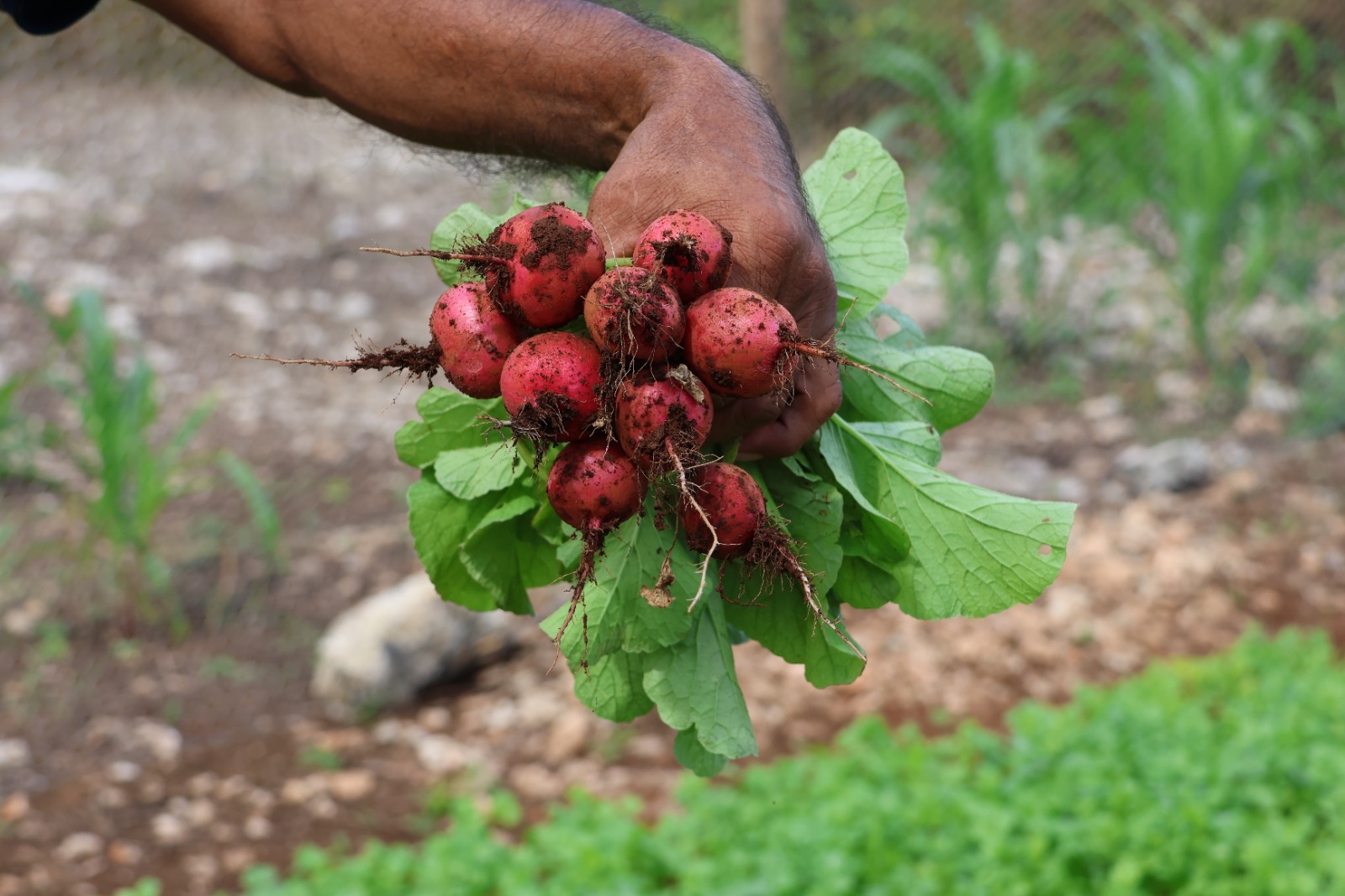 Uno de los beneficiarios es Juan de la Cruz Caamal Eb, del municipio de Cansahcab, quien ya comenzó a obtener las primeras cosechas de rábano, cilantro y chile dulce en su huerto familiar, fortaleciendo la alimentación de su hogar y generando nuevas oportunidades de ingreso.