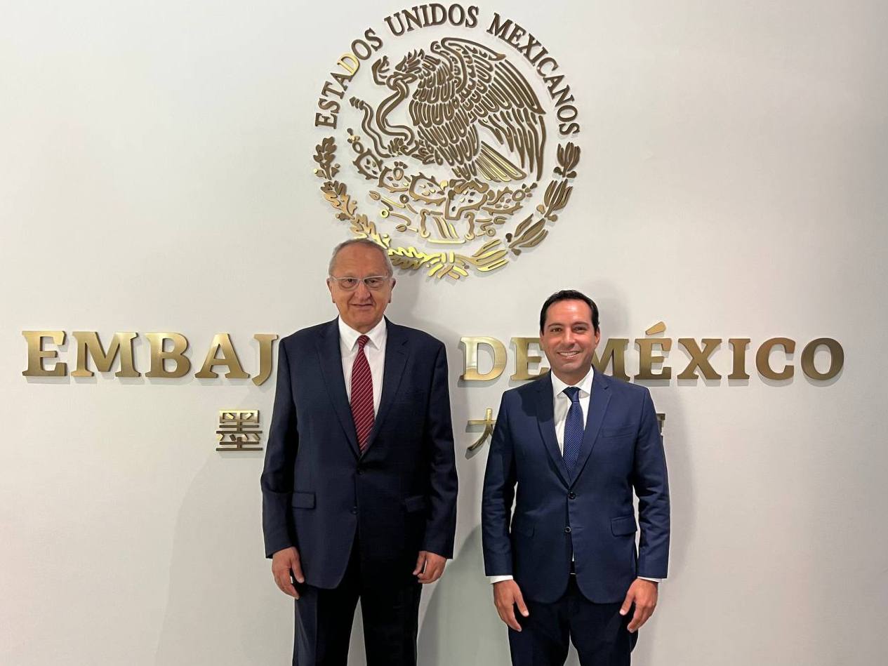 De igual forma, el Gobernador sostuvo un encuentro con el embajador de México en China, Jesús Seade, con quien abordó temas de carácter cultural, atracción de inversión, desarrollo de tecnología y relocalizaciones para México y, en especial, para Yucatán.