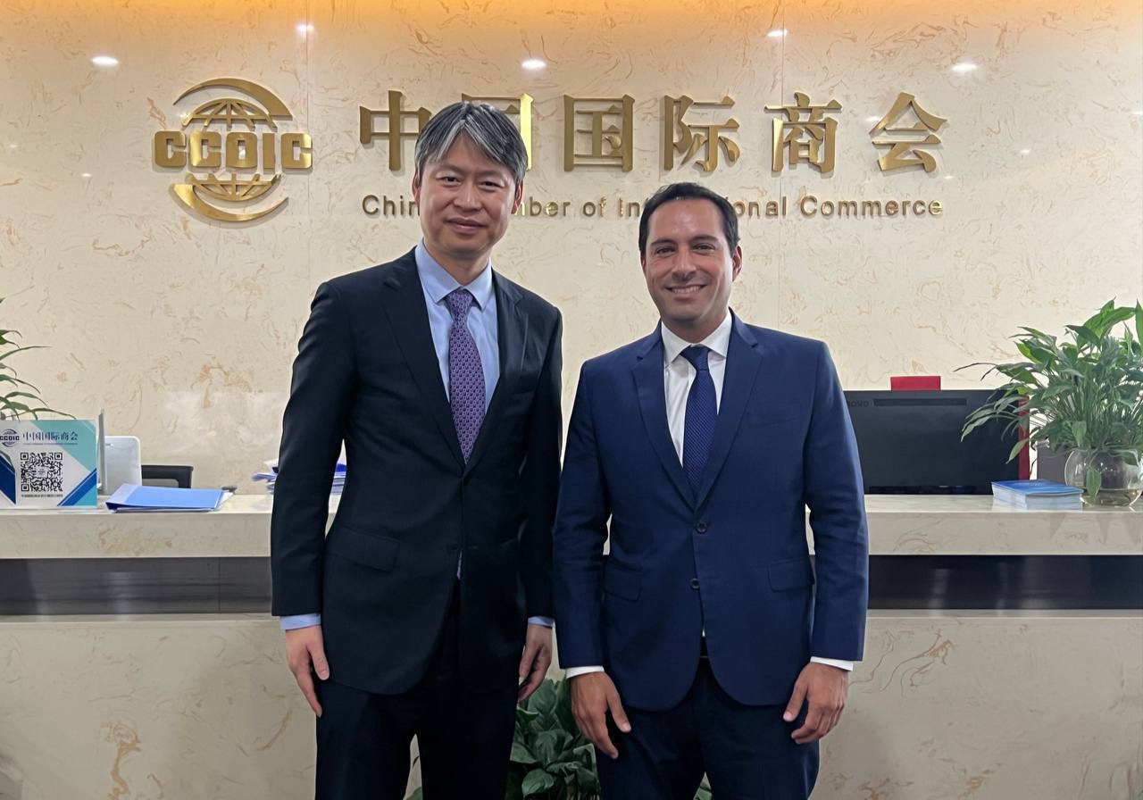 En su primer día de actividades de la misión comercial que encabeza por el gigante asiático, Vila Dosal sostuvo un encuentro con Sun Xiao, director general de la Cámara de Comercio de China, con quien acordó iniciar esta red de proveeduría de productos yucatecos a través de una delegación de Yucatán, en su mayoría conformada por empresarios interesados en colocar sus productos en ese mercado, que viajarán hacia ese país en noviembre próximo.