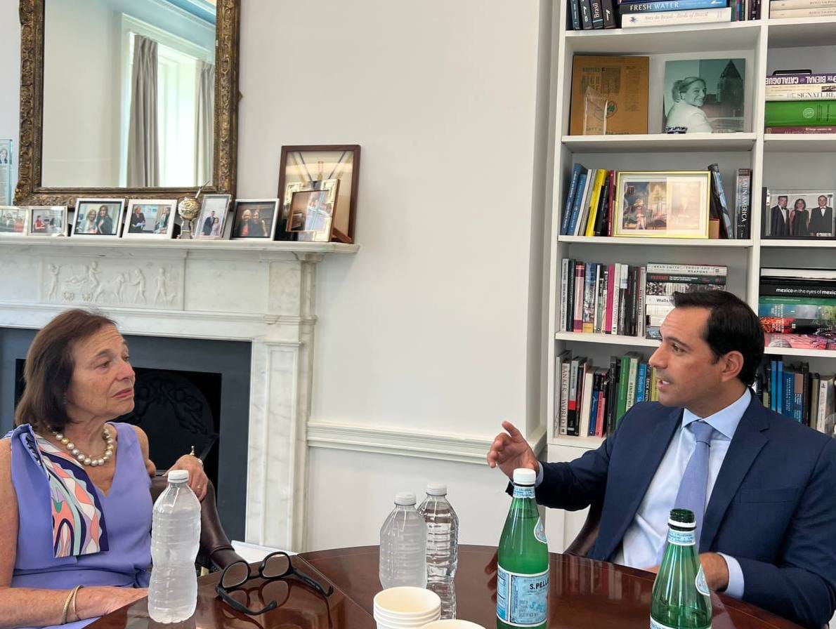 Al continuar con su agenda de trabajo, Vila Dosal se reunió con la Presidenta del Consejo de las Américas, Susan Segal, donde presentó las ventajas competitivas con las que cuenta Yucatán y cómo se están aprovechando en la estrategia Nearshoring para impulsar la economía estatal, generando más empleos mejor pagados para las y los yucatecos.