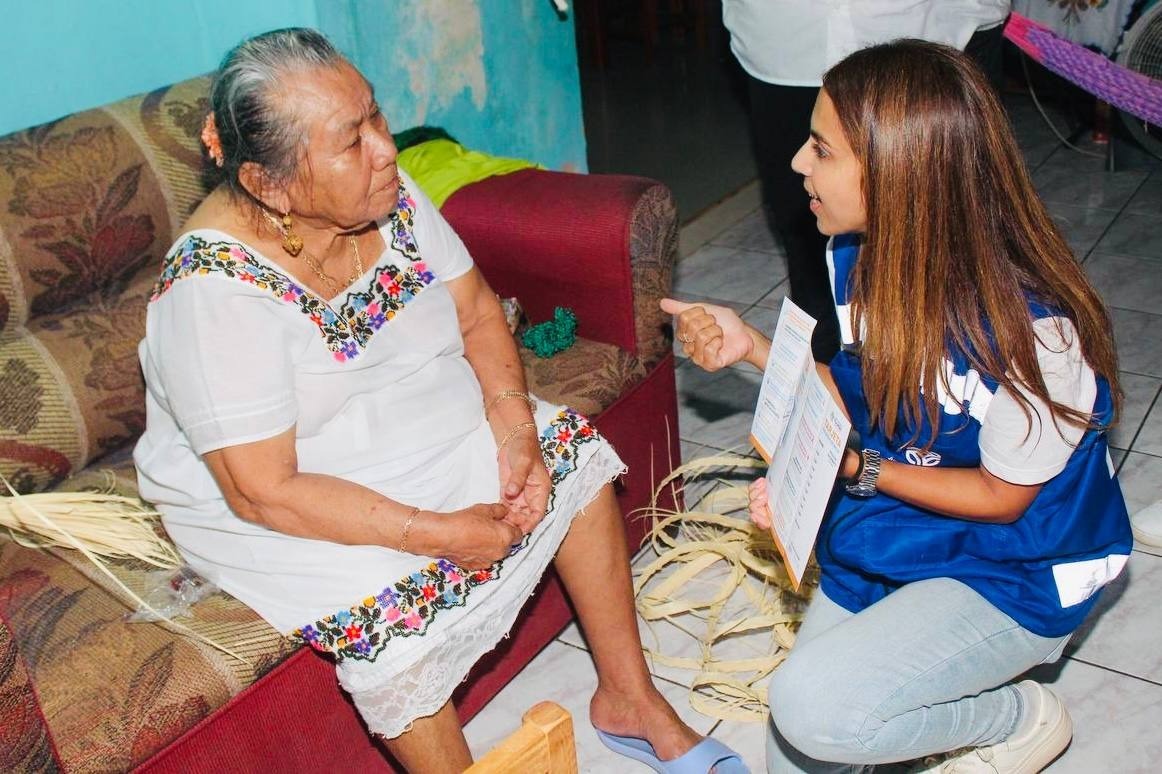 En esta jornada, la también rectora de la Universidad Tecnológica Metropolitana (UMT) recorrió las calles y Centros de Salud de las comisarías de Kancab, en Tekax y Pustunich, en Ticul, donde pudo explicar a las familias cómo pueden afiliarse y de qué manera estas acciones apoyan su salud y economía.