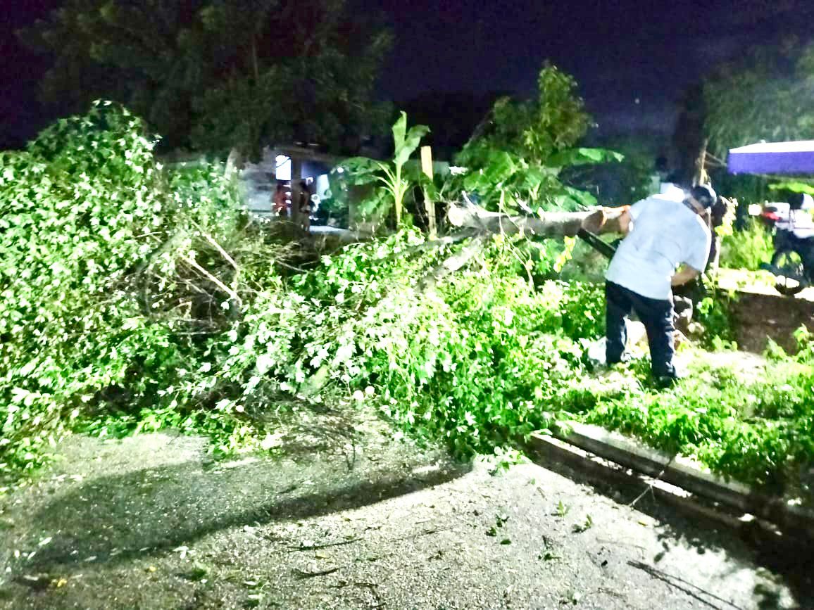 Brigadas de Protección Civil de Kanasin atendieron la tarde noche de ayer viernes diversos reportes de árboles caídos en varias partes del municipio, esto a causa de las fuertes lluvias que se registraron.