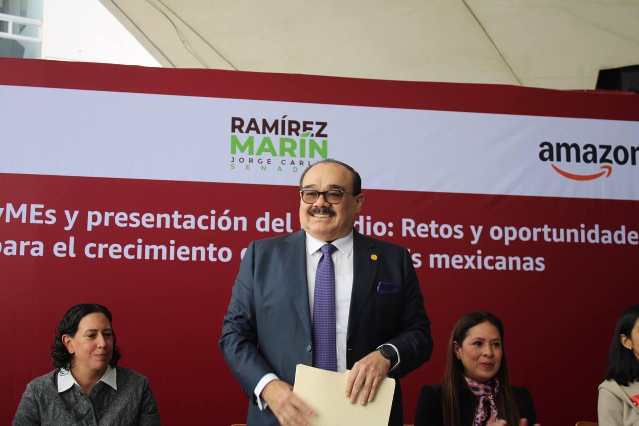 El vicepresidente de la Mesa Directiva del Senado de la República, Jorge Carlos Ramírez Marín, y directivos de Amazon México presidieron la Feria de Pequeñas y Medianas Empresas Mexicanas (PyMEs), con el objetivo de apoyar a la iniciativa privada para fortalecer el desarrollo socioeconómico del país.