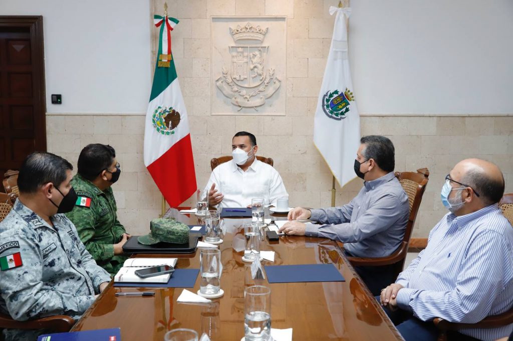 En la reunión que sostuvo el Alcalde de Mérida, Renán Barrera Concha, con el General de Brigada D.E.M. Francisco Miguel Aranda Gutiérrez, Cmte. de la 32/a. de la zona militar de Valladolid, y el Comisario de la Guardia Nacional, Francisco Díaz González, Coordinador Estatal de la Guardia Nacional, asignado a la entidad, se abordaron las estrategias y proyectos para mantener a la capital yucateca con bajos índices delictivos.