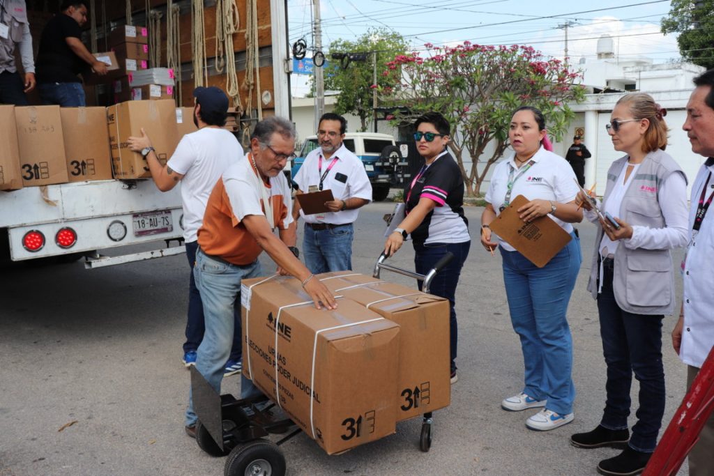 Durante la recepción del material, la funcionaria electoral destacó que para la elección de diversos cargos del Poder Judicial de la Federación arribó al estado cerca de 10 toneladas de diversos materiales y artículos de oficina, mismos que se distribuirán entre los seis distritos electorales federales en la entidad.