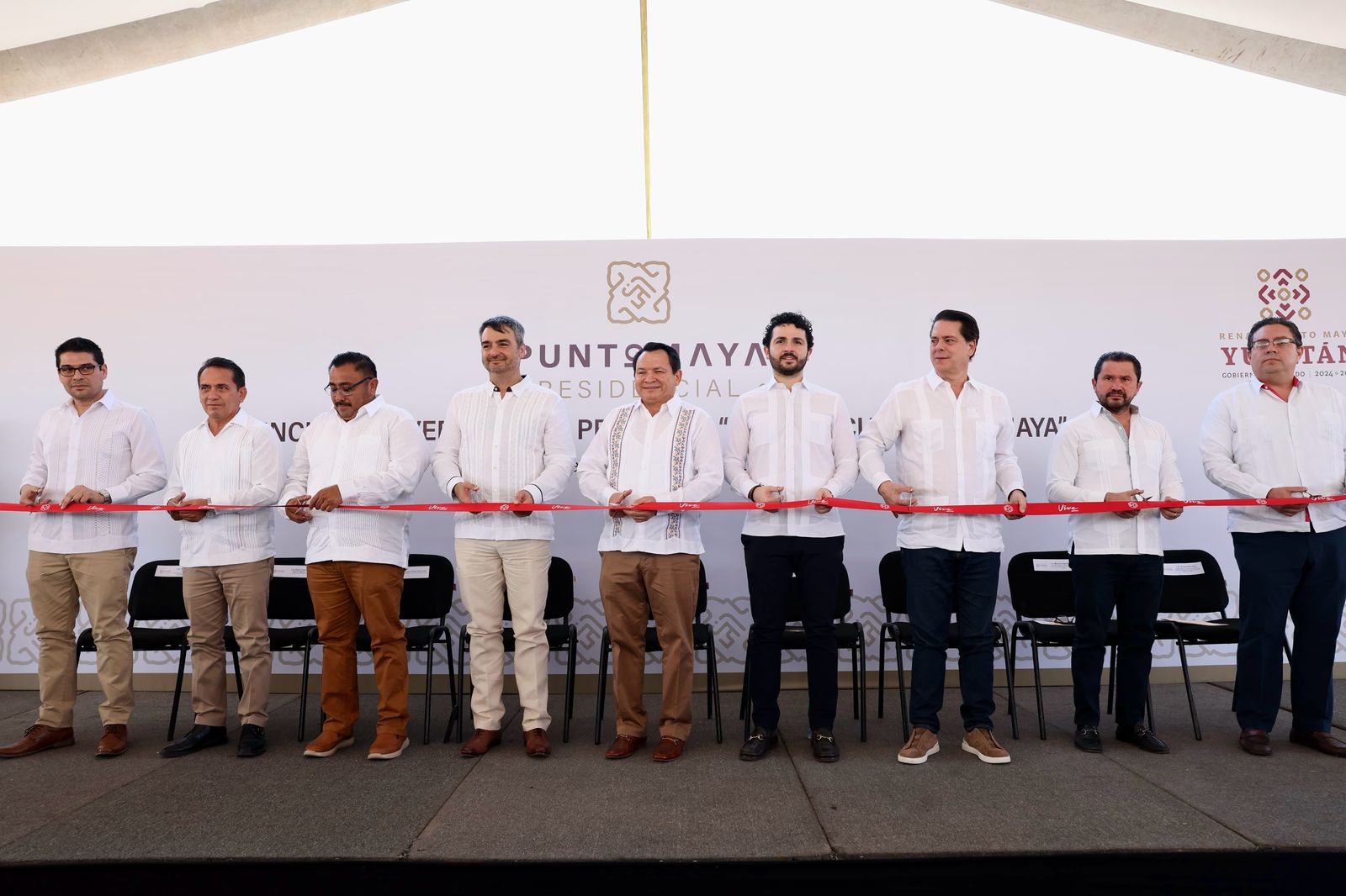 En primera instancia, el Gobernador Joaquín Díaz Mena y el Director General y socio de Misión Obispado, Miguel Ángel Cagnasso Cantú, realizaron el corte del listón inaugural del proyecto “Residencial Punto Maya”, que es resultado del entorno de certeza jurídica y la seguridad que impera en el estado.