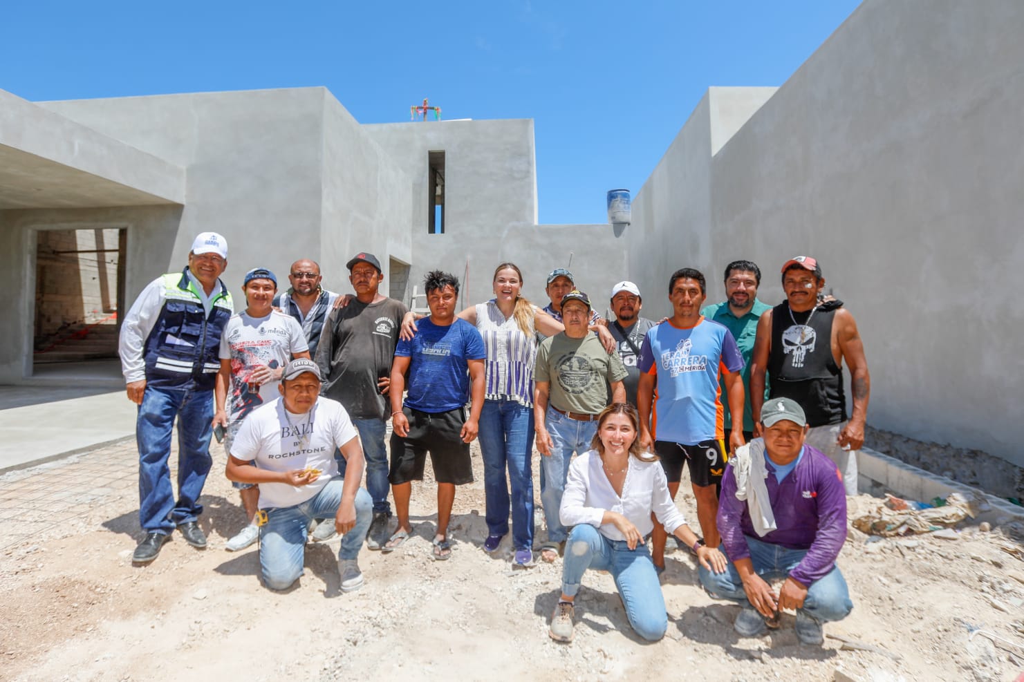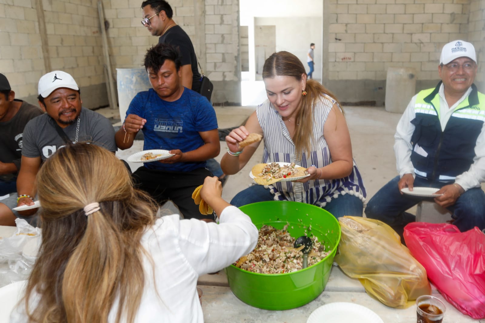 En el día de la Santa Cruz, Cecilia Patrón Laviada, alcaldesa de Mérida, convivió con trabajadores de la construcción en una obra cerca de la comisaría de Dzityá.