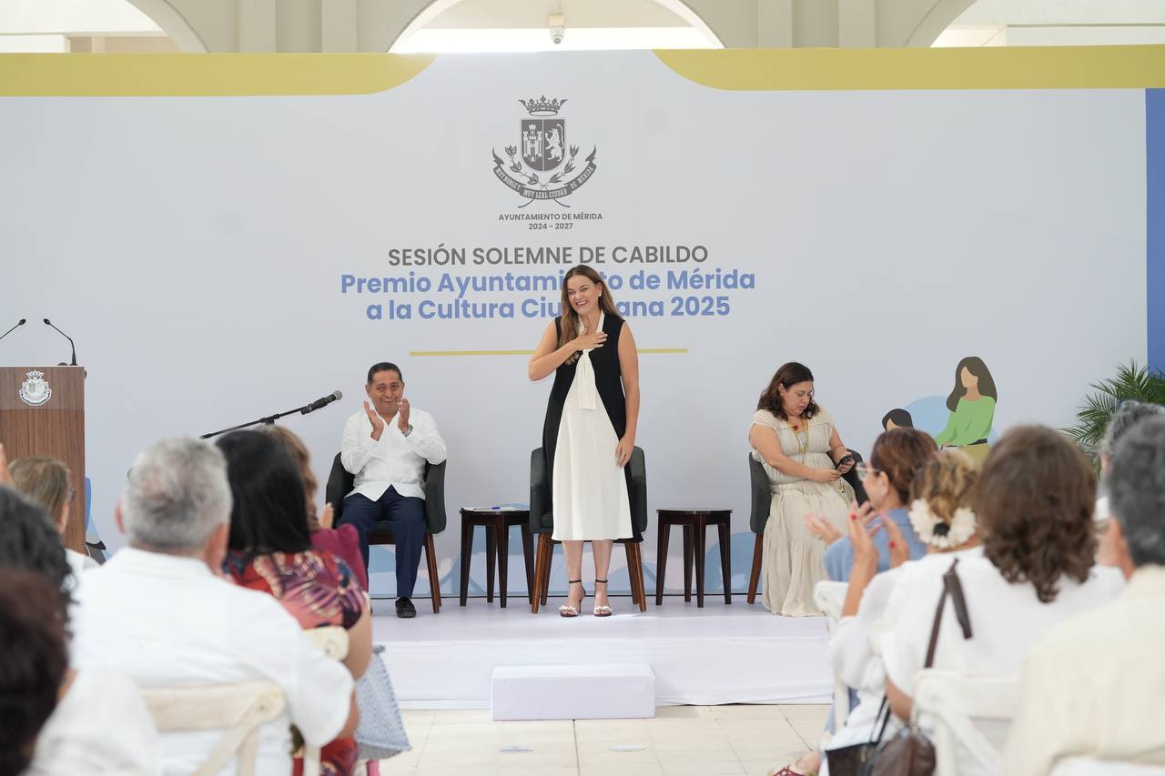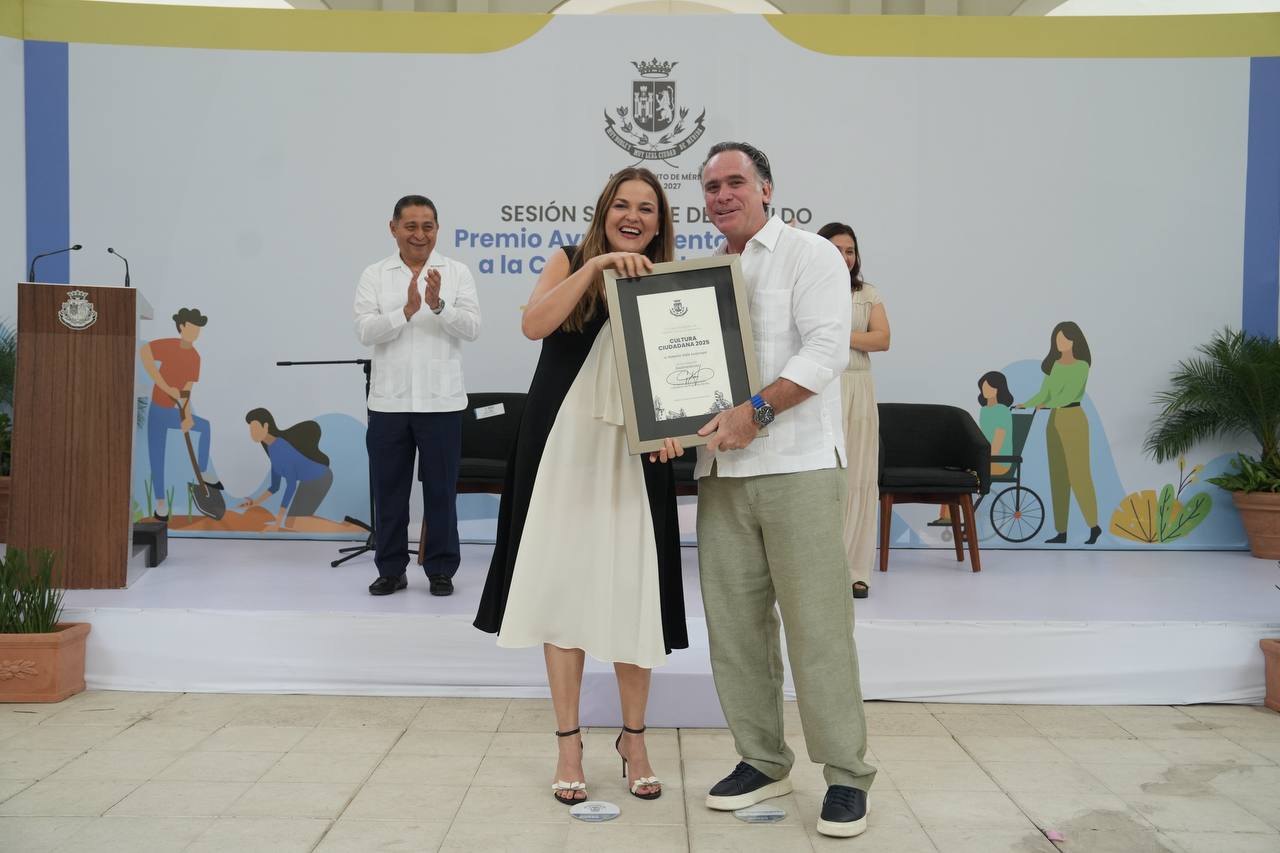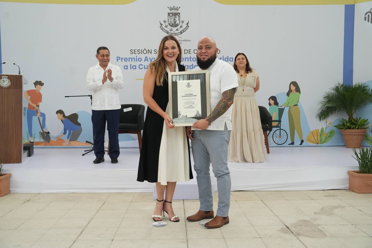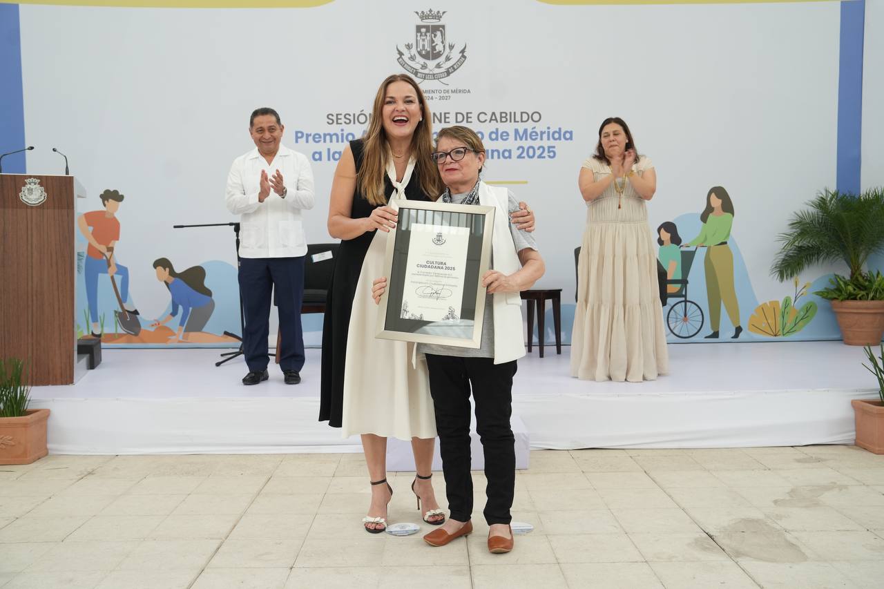 Los recipiendarios del Premio Ayuntamiento de Mérida a la Cultura Ciudadana 2025 son: Martha Sam Yick Domínguez, presidenta de la Asociación Alas Unidas con Liam (Valores Ciudadanos); Comedor Zarigüeyas, representante Marina Buenrostro (Participación Ciudadana Solidaria); Carlos Alberto Cobá Loría (Convivencia con el Entorno Ambiental); Sra. Elena Clementina Fernández Moral (Tradiciones, Usos Y Costumbres); Manuel Jesús Zavala Gómez (Historia y Crónica); Diego Mariano Olivera Cal, Convoy Teatro (Empresas Culturales); y el Chef Roberto Solís Azarcoya (Gastronomía).
