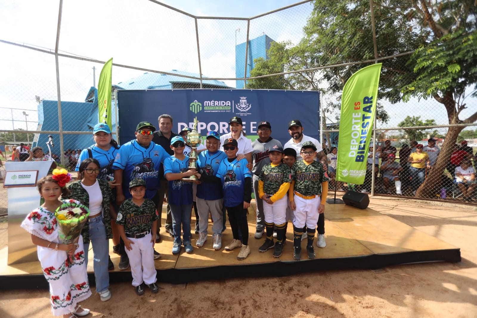 La presidenta municipal Cecilia Patrón Laviada inauguró el noveno torneo de la Liga Meridana Estatal Infantil y Juvenil de Béisbol, un evento que reúne a cientos de niños y jóvenes apasionados por el “rey de los deportes”.