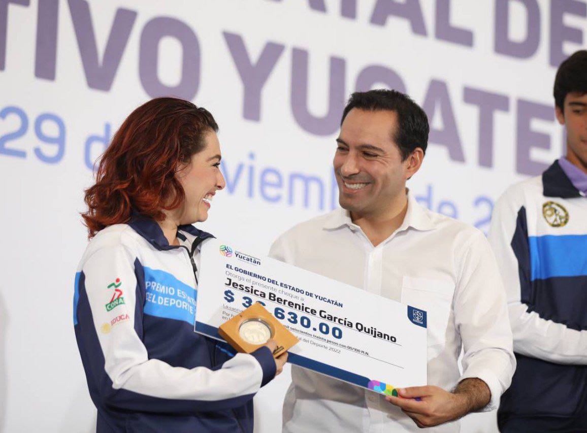 Ante familiares de los deportistas, Vila Dosal realizó la entrega de dichos premios en los que sobresalió la deportista de Para-Tae Kwon Do, Jessica Berenice García Quijano, quien recibió ambas distinciones, en la categoría de Atleta del Premio Estatal del Deporte 2022 y como mejor deportista paralímpico del Mérito Deportivo Yucateco 2022.
