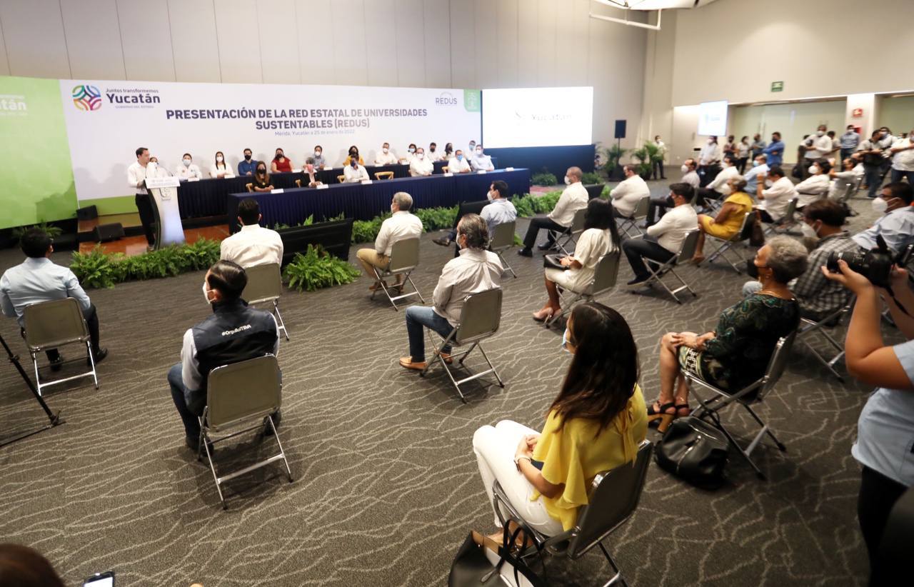 El Gobernador Mauricio Vila Dosal puso en marcha la Red Estatal de Universidades Sustentables (Redus), iniciativa que a través de la suma de esfuerzos promueve acciones para la conservación del medio ambiente y la cual en su primera fase suma 15 planteles de educación superior públicos y privados del estado que representan la participación de más de 26,000 alumnos que funcionarán como actores en el desarrollo de un estado más sustentable.