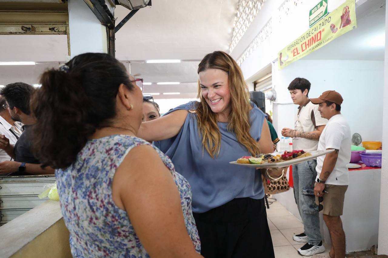 Más tarde, la presidenta municipal acudió a la Tercera Edición de la Feria del Salbut en el emblemático Mercado de San Sebastián. Este evento, organizado por el gremio de locatarios en coordinación con la Secretaría Técnica del Servicio Público de Mercados, se ha consolidado como una de las fiestas gastronómicas más esperadas del Barrio Bravo.