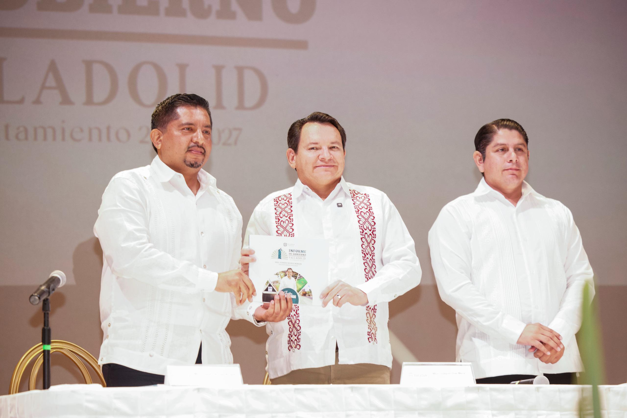 Momentos antes, el mandatario estatal acompañó al alcalde de Valladolid en su Primer Informe de Gobierno, donde refrendó su compromiso de seguir trabajando hombro con hombro con todos los niveles de gobierno para combatir la desigualdad y lograr que el Renacimiento Maya lleve bienestar a cada familia del municipio y de todo Yucatán.