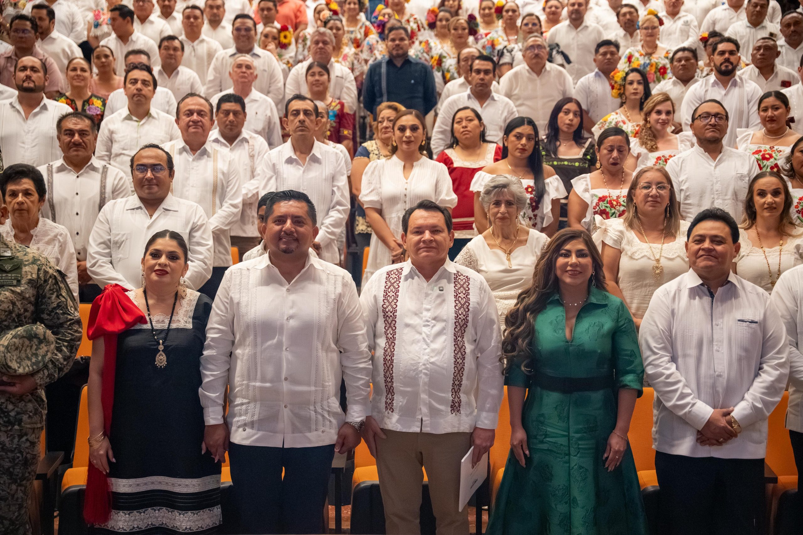 Acompañado de la presidenta honoraria del DIF Yucatán, Mtra. Wendy Méndez Naal, subrayó que la seguridad es una tarea compartida entre la Federación, el Estado y los municipios, y que gracias al trabajo coordinado Yucatán se mantiene como el estado más seguro del país.