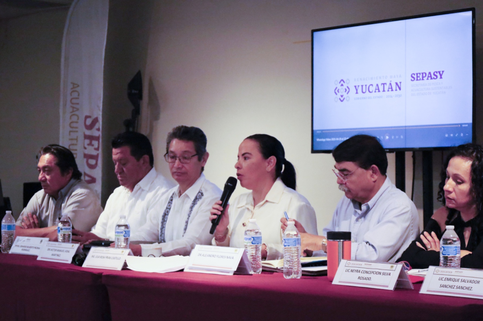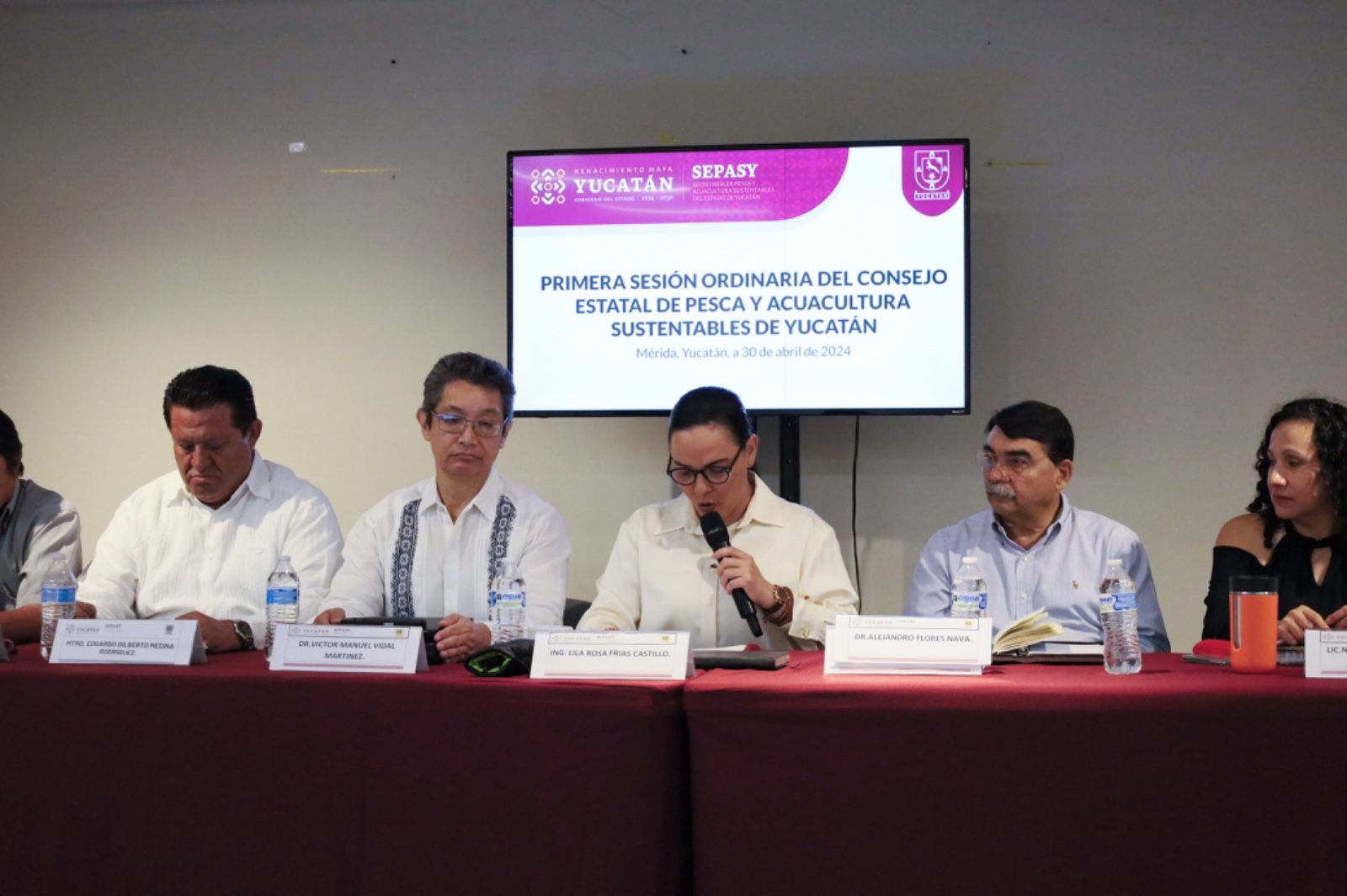 La sesión contó con la participación del Comisionado Nacional de Acuacultura y Pesca, Alejandro Flores Nava; el Director General del Instituto Mexicano de Investigación en Pesca y Acuacultura Sustentables (IMIPAS), Dr. Víctor Manuel Vidal Martínez; el Secretario de Desarrollo Rural, Mtro. Edgardo Gilberto Medina Rodríguez; la Secretaria de Desarrollo Sustentable, Neyda Concepción Blanco Méndez; el presidente nacional de CONMECOOP, José Luis Carrillo Galaz, y el presidente de CANAINPESCA Yucatán, Lic. Enrique Salvador Sánchez Sánchez.