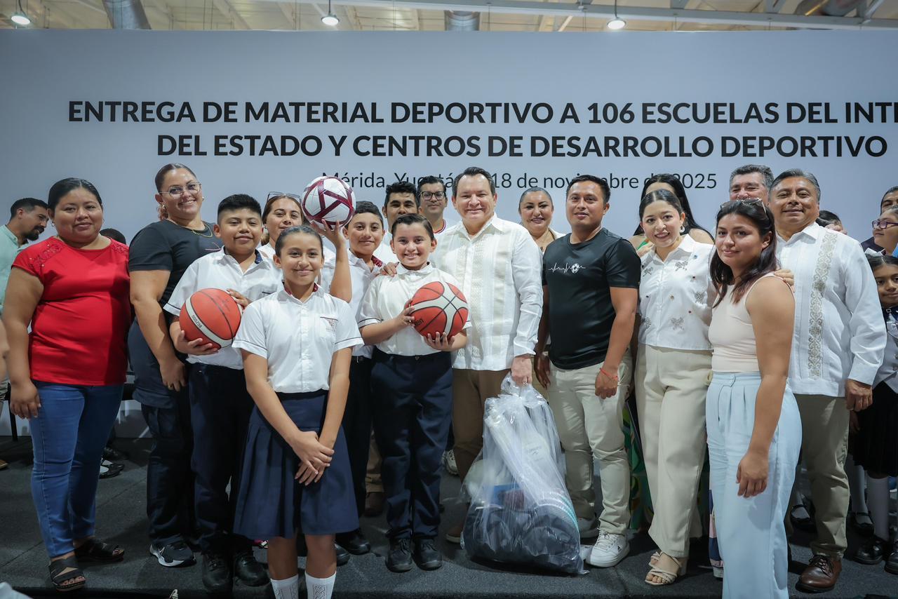 Desde el Multigimnasio Socorro Cerón Herrera del Complejo Deportivo Kukulcán, el Gobernador detalló que se trata de una primera entrega, ya que el Gobierno del Renacimiento Maya continuará respaldando a más escuelas en todo Yucatán para que cuenten con el equipo necesario para impulsar el desarrollo de las capacidades físicas y deportivas de la niñez y juventud.