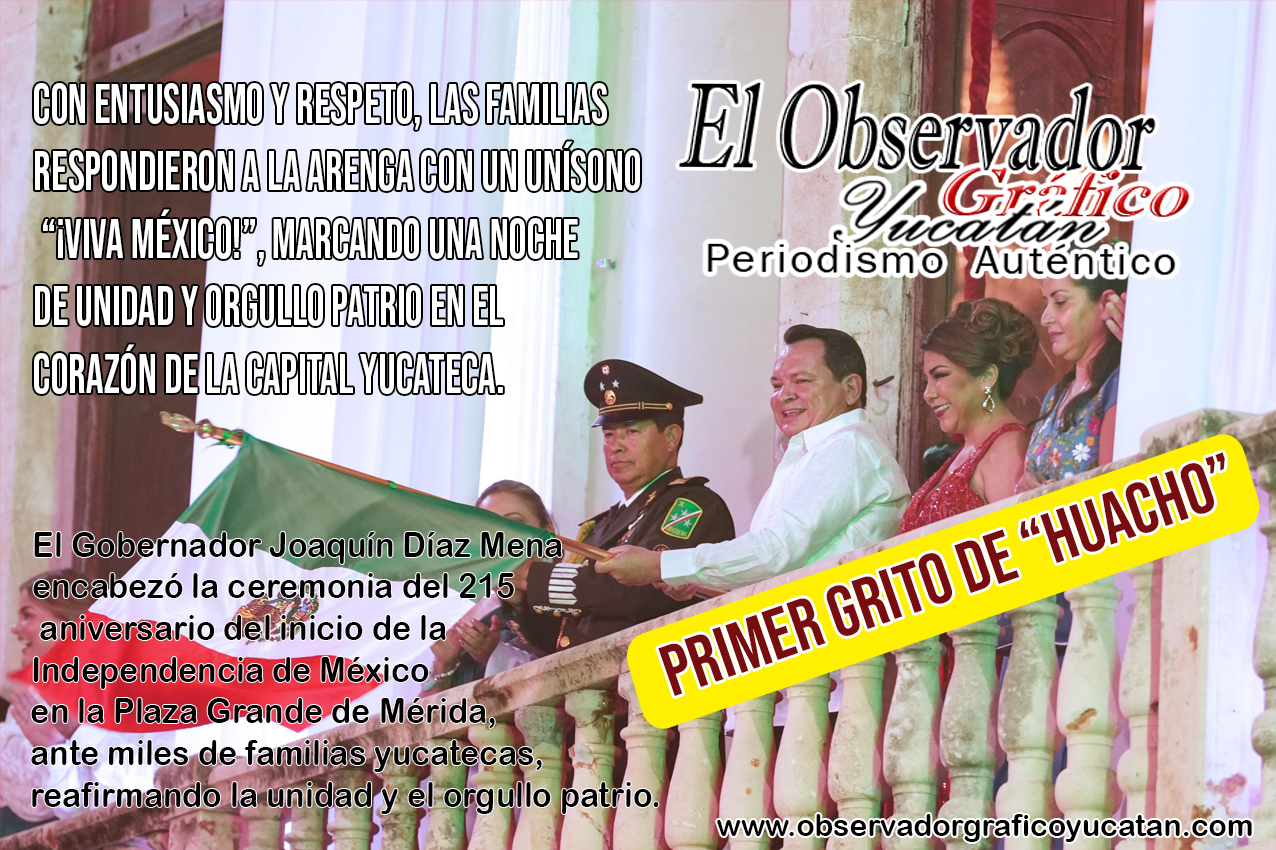 El Gobernador Joaquín Díaz Mena encabezó la ceremonia del 215 aniversario del inicio de la Independencia de México en la Plaza Grande de Mérida, ante miles de familias yucatecas, reafirmando la unidad y el orgullo patrio.
