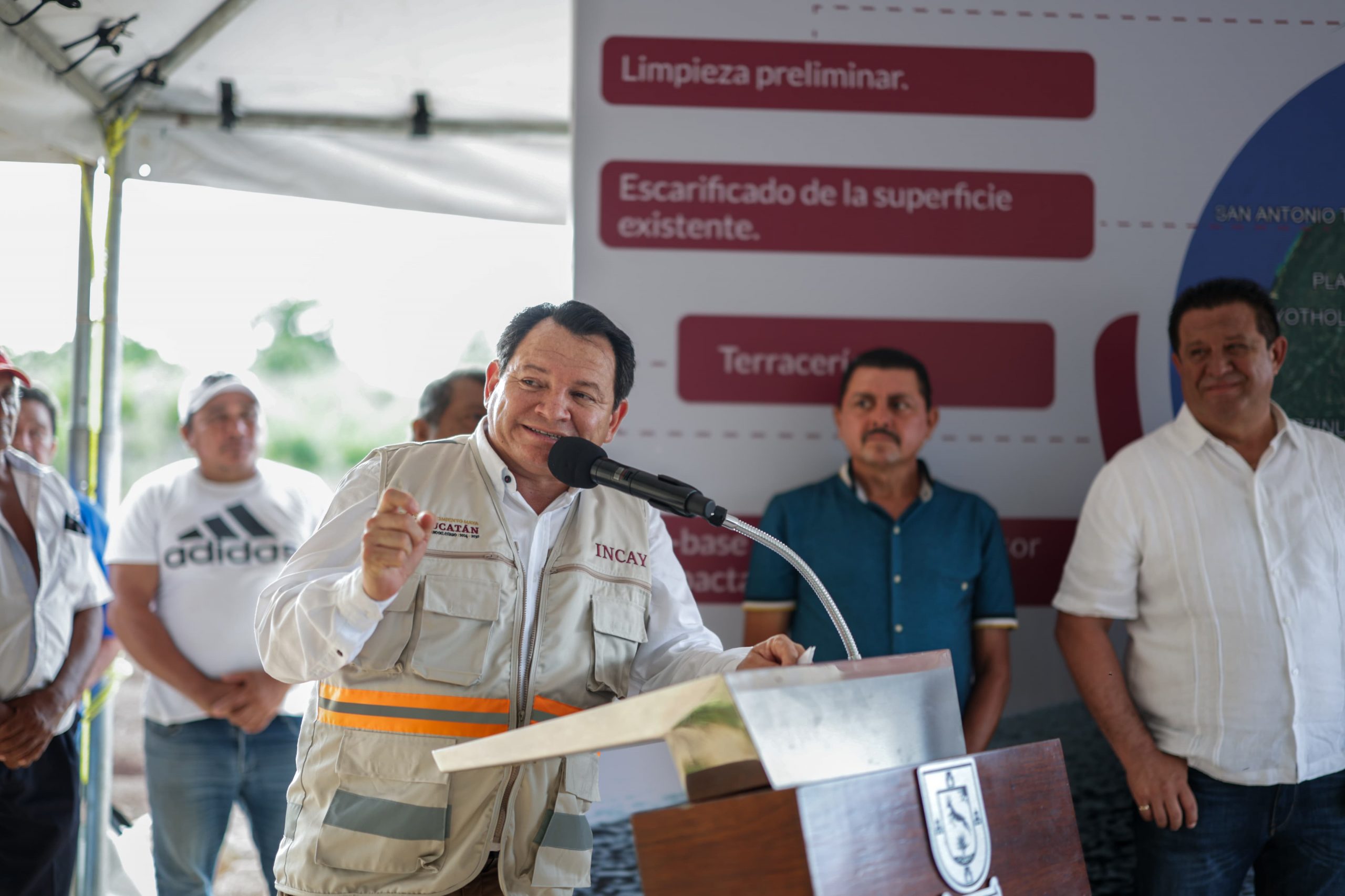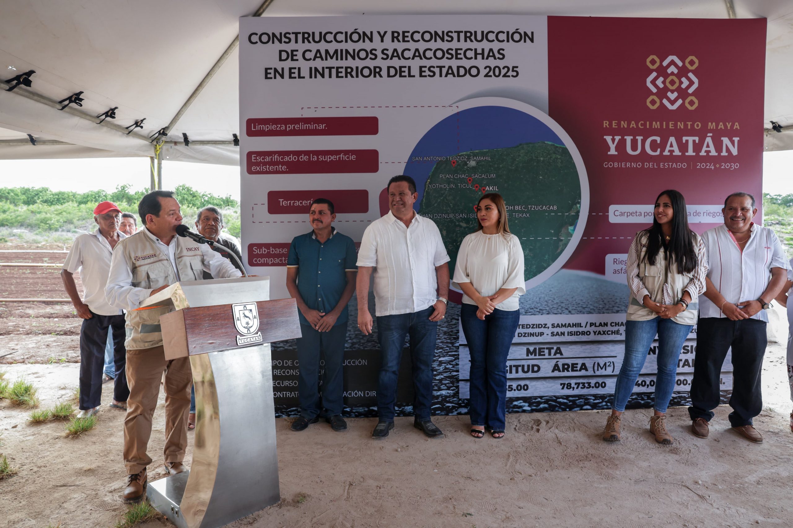 La intervención contempla trabajos de terracería, subbase compactada con material sahcab al 95%, escarificación cuando sea necesario, y aplicación de doble riego de sello con emulsión asfáltica y material pétreo, bajo supervisión del Instituto de Infraestructura Carretera de Yucatán (Incay) y en coordinación con la Secretaría de Infraestructura para el Bienestar (SIB).
