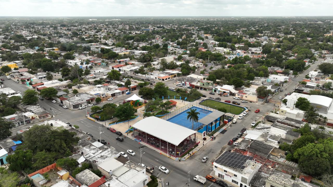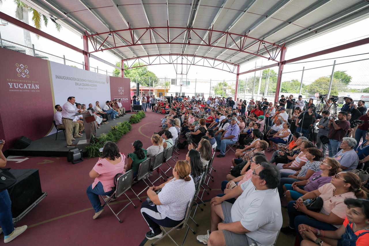 En la colonia Azcorra, el titular del Ejecutivo estatal entregó la construcción de un domo en la cancha de usos múltiples y la remodelación del parque infantil K’iiwik, con una inversión superior a 3.5 millones de pesos, lo que permitirá a niñas, niños y jóvenes contar con espacios dignos y seguros para el deporte y la convivencia.