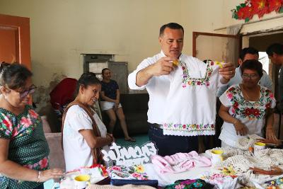 El alcalcalde con licencia, también se reunió con artesanas de Chocholá, quienes compartieron sus desafíos y necesidades.