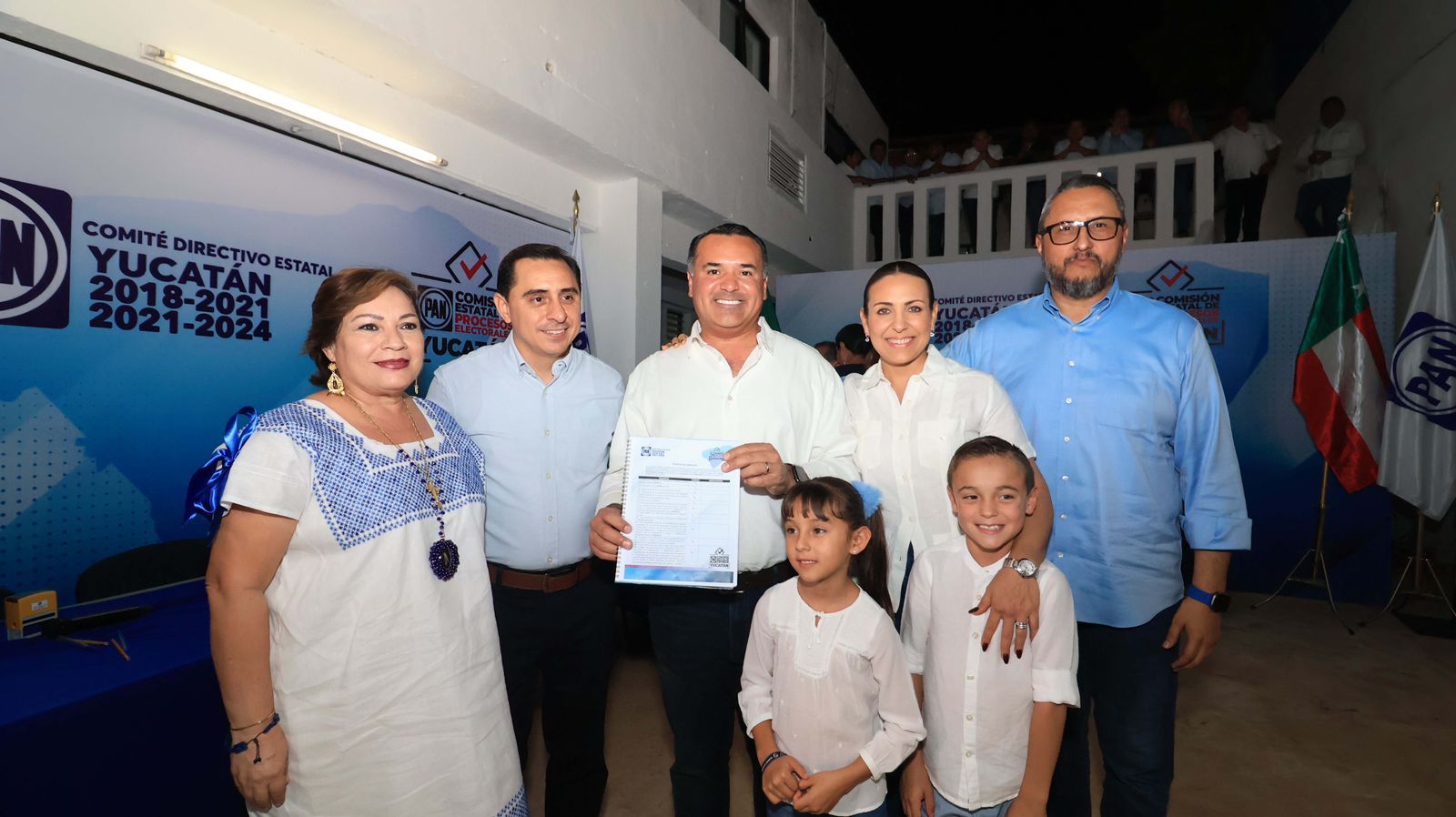 Acompañado de su familia y de numerosos simpatizantes, Renán Barrera entregó los documentos requeridos a los integrantes de la Comisión Electoral, integrada por Sergio Ángulo Uc, Kenny Gaspar Quijano Cabrera, Claudio Coello Herrera y Juana de la Cruz Jimenez Nah.