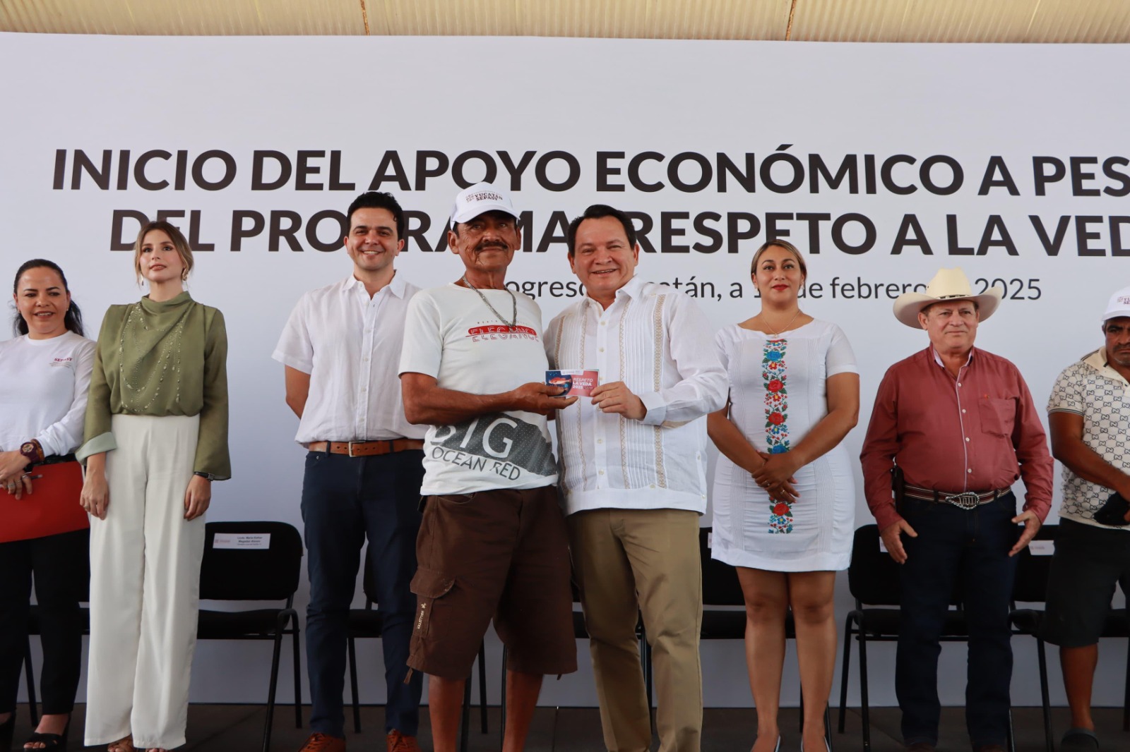 Sustentable del estado (Sepasy), Lila Frías Castillo, el mandatario estatal indicó que la iniciativa Respeto a la Veda es resultado de la colaboración de las y los pescadores, así como del Gobierno Federal encabezado por la presidenta Claudia Sheinbaum, cuyo respaldo, dijo, ha sido clave para llevar adelante este tipo de programas que fortalecen a Yucatán y a su gente.