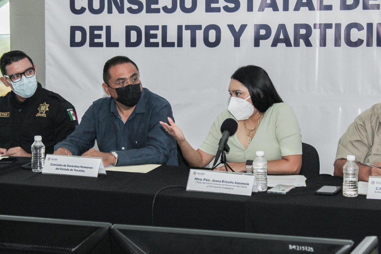 Para combatir la violencia y delincuencia en la entidad, se realizó la primera sesión ordinaria 2022 del Consejo Estatal de Prevención del Delito, que dirigió la titular del Centro Estatal de Prevención del Delito y Participación  (Cepredey), Joana Briceño Ascencio, en seguimiento a la estrategia integral del GobernadorMauricio Vila Dosal.Los resultados que arrojó esta sesión indicaron que durante el primer trimestre de 2022, se ejecutó 556 actividades, en beneficio de ocho mil 381 personas, siendo cuatro mil 988 mujeres y tres mil 393 hombres; el impacto geográfico, de enero a marzo, fue de 34 municipios y se intervino el 73 por ciento de las demarcaciones prioritarias.“Capacitamos, en materia de prevención, a 132 funcionarios de dependencias gubernamentales y ayuntamientos; llegamos a 68 municipios con diversos temas, como habilidades de resolución de conflictos, prevención de violencia familiar y auto cuidado de la salud mental”, expuso la funcionaria.