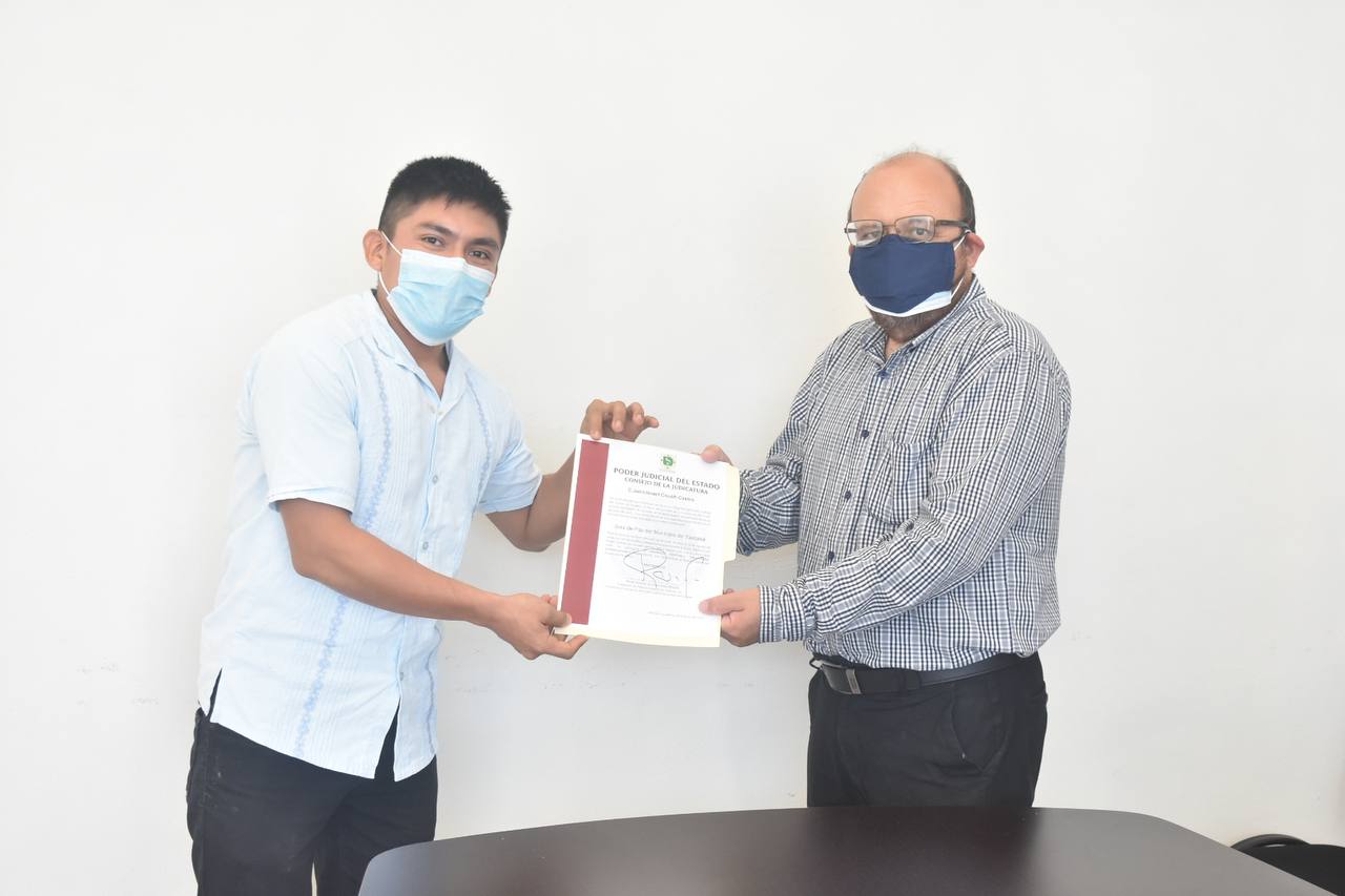 Jueces de Paz de los municipios de Chikindzonot, Chocholá, Tahdziú, Tekantó y Yaxcabá rindieron compromiso constitucional en una ceremonia realizada esta mañana en la Sala de Plenos del Consejo de la Judicatura.