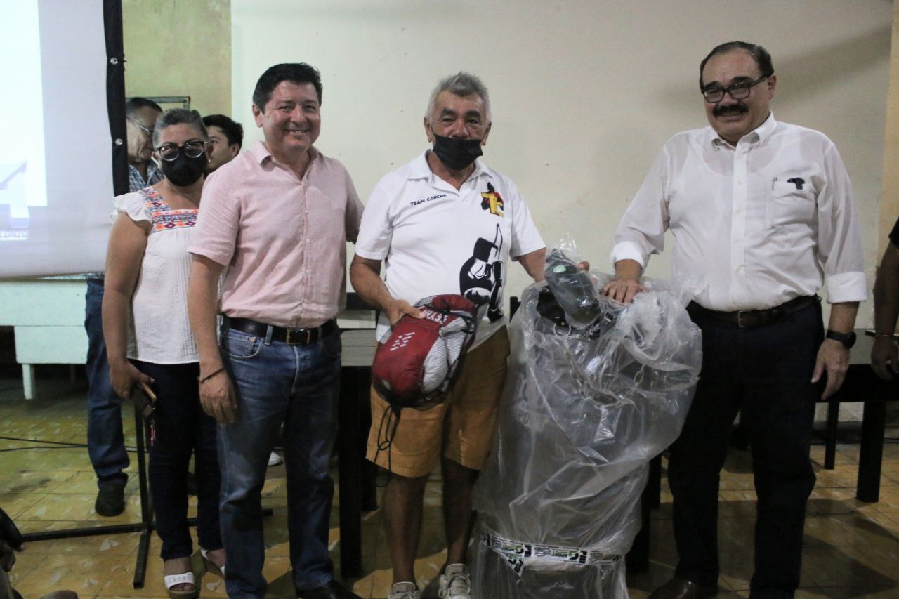 De igual forma y, como parte de su apuesta por el deporte, el legislador entregó equipo deportivo a Ramón Concha Pech, entrenador y exboxeador, para que más jóvenes puedan prepararse en esta disciplina.