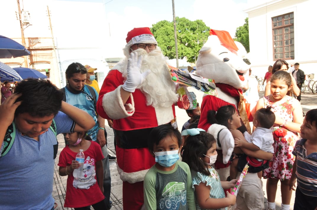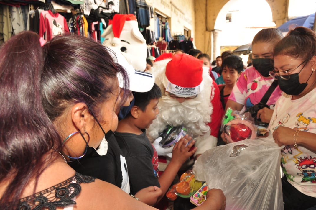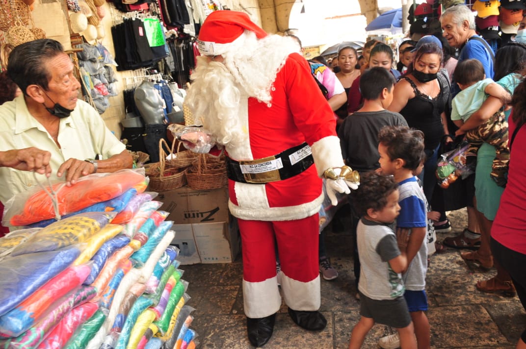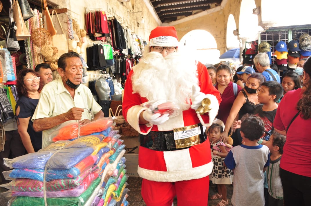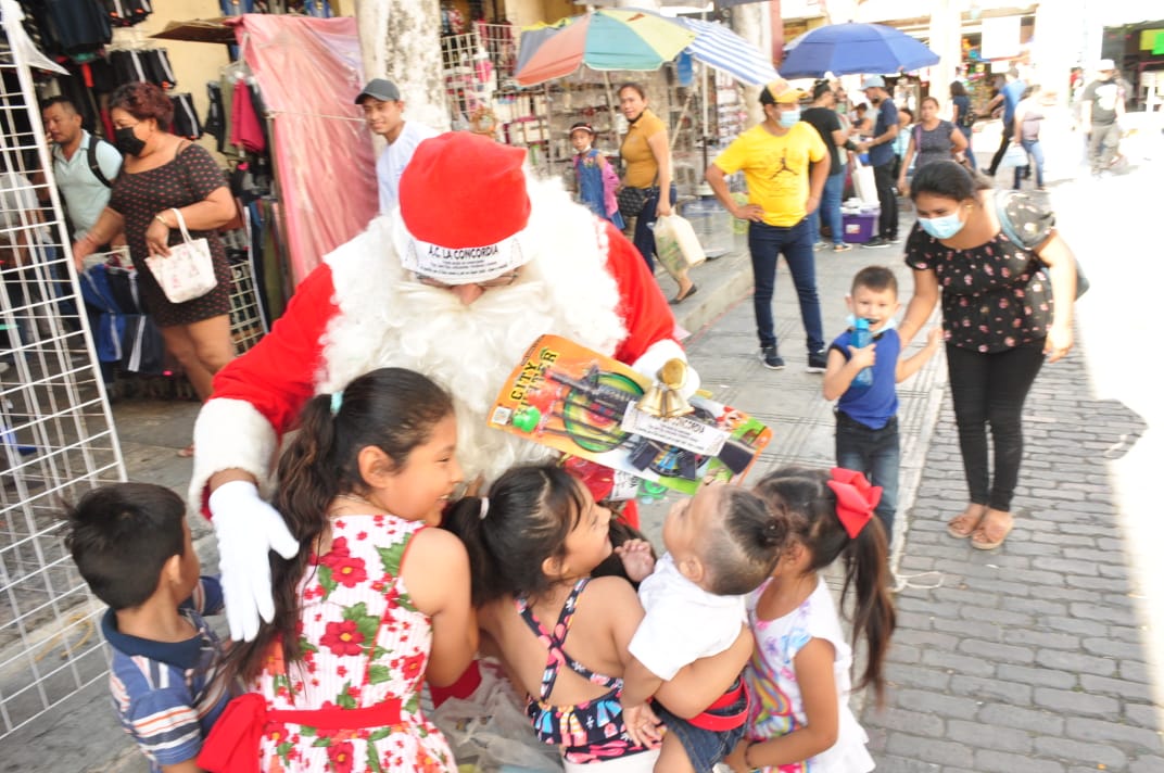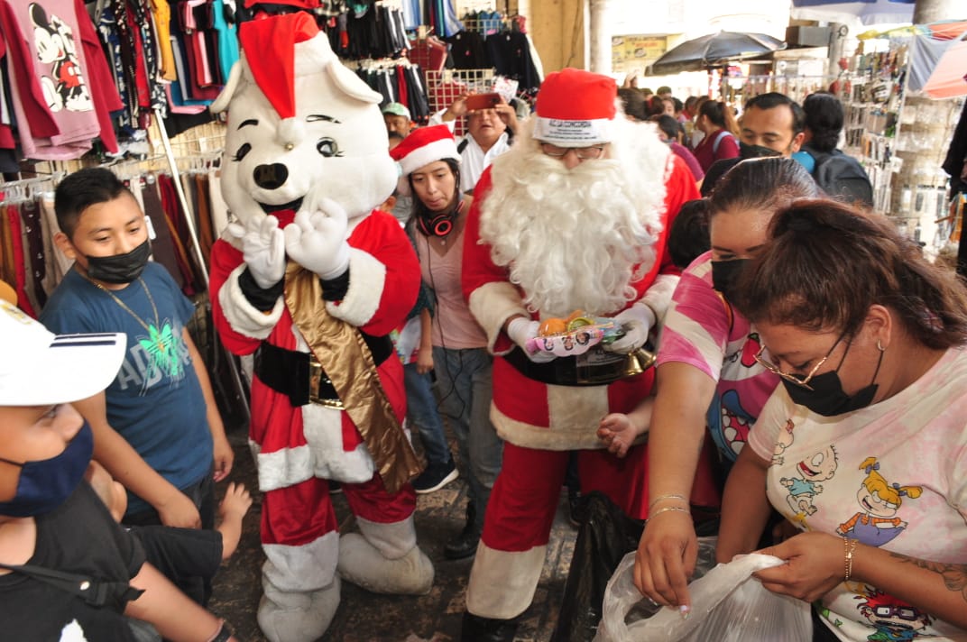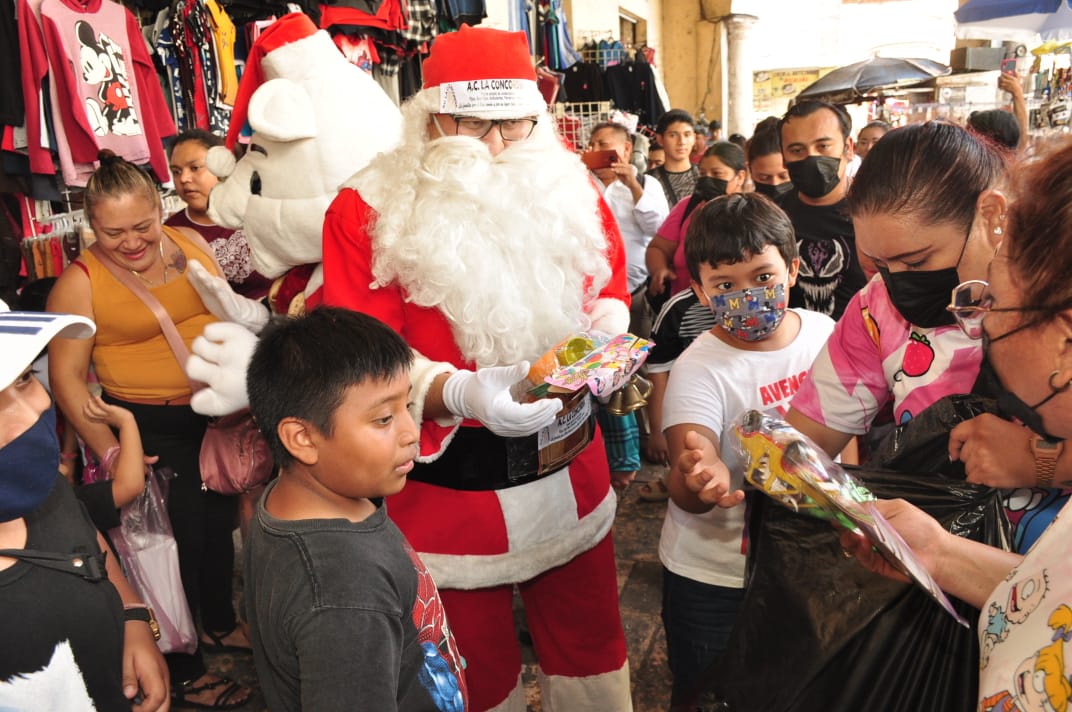 Como cada año los comerciantes ambulantes ubicados en Portal de Granos y en los alrededores del Museo de la Ciudad, con la ayuda de Santa Claus estuvieron repartiendo juguetes a los pequeños como muestra de agradecimiento por la preferencia que les dignan todos los días, informó el presidente de la Asociación de Comerciantes Ambulantes La Concordia, Jaime Manrique Manzanero.