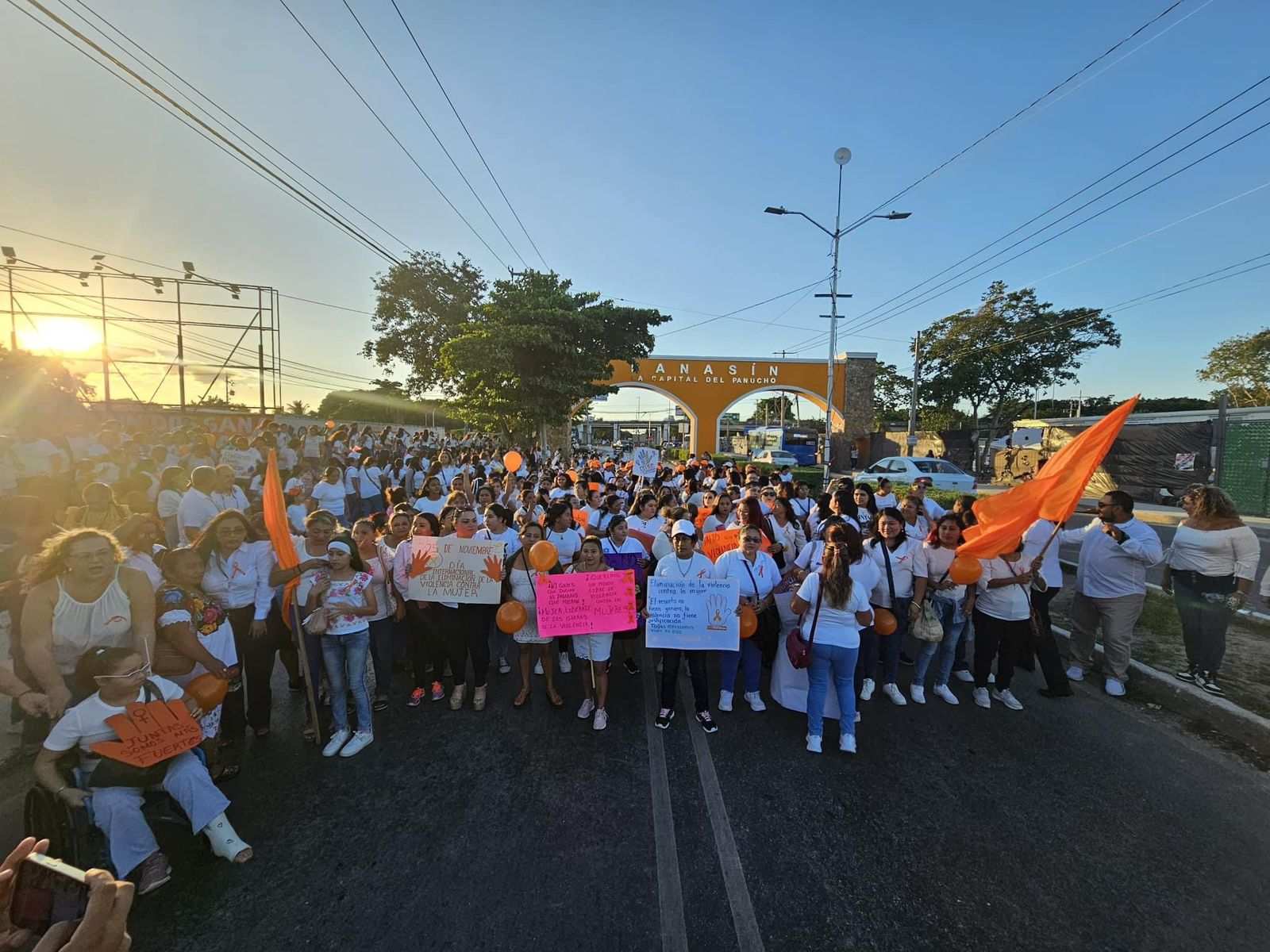 Encabezadas por el alcalde Edwin Bojórquez Ramírez y esposa, Raquel Balam Rocha, presidenta municipal del DIF, poco más de 1,500 mujeres se dieron cita la tarde de ayer lunes en el arco de entrada del municipio para realizar una caminata pacífica y conmemorar el Día Internacional de la Eliminación de la Violencia contra la Mujer.
