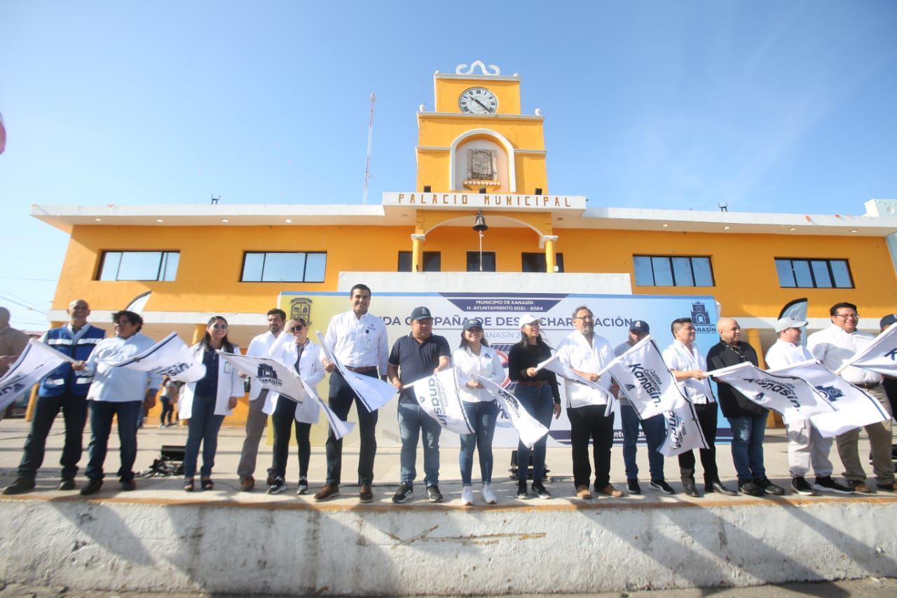 Esta mañana, el alcalde Edwin Bojórquez Ramírez abanderó el inicio de la Segunda Campaña de Descacharrización en Kanasín, cuyo principal objetivo es eliminar de los predios cualquier tipo de cacharro que pudiera ser reservorio para el mosco transmisor del dengue, chinkunguya y zika.