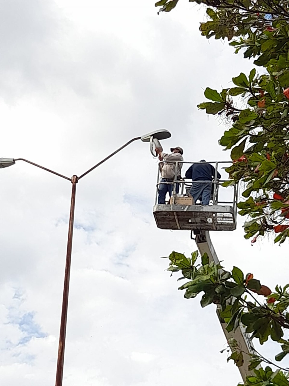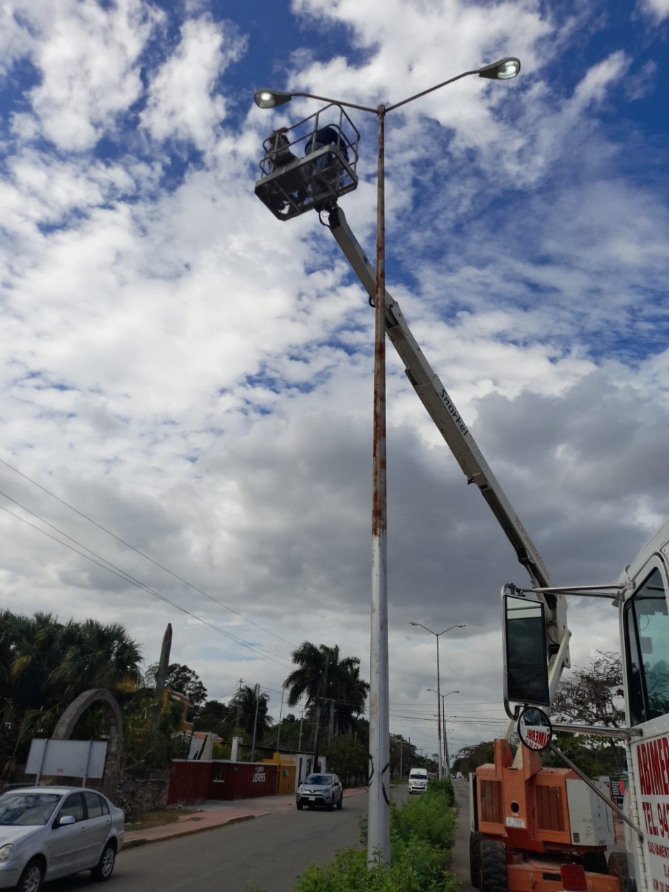 El ayuntamiento de Kanasín envío a sus cuadrillas de obras públicas municipales y de inmediato comenzaron con los trabajos de reparación del alumbrado público de esa avenida de la colonia Leona Vicario.