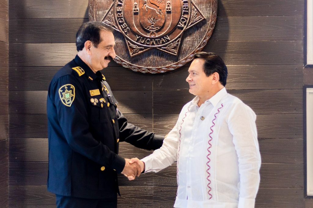 Díaz Mena dialogó con el comandante Saidén, con relación a su plan de acción en materia de seguridad, que contempla la profesionalidad en la gestión policial, el fortalecimiento de la vigilancia comunitaria, la modernización e inversión en equipos y sistemas policiales, el refuerzo del Centro Estatal de Evaluación y Control de Confianza (C3) y la creación de la Universidad de Ciencias para la Seguridad, Lic. Manuel Berzunza, entre otros temas de interés para reforzar la seguridad de Yucatán.