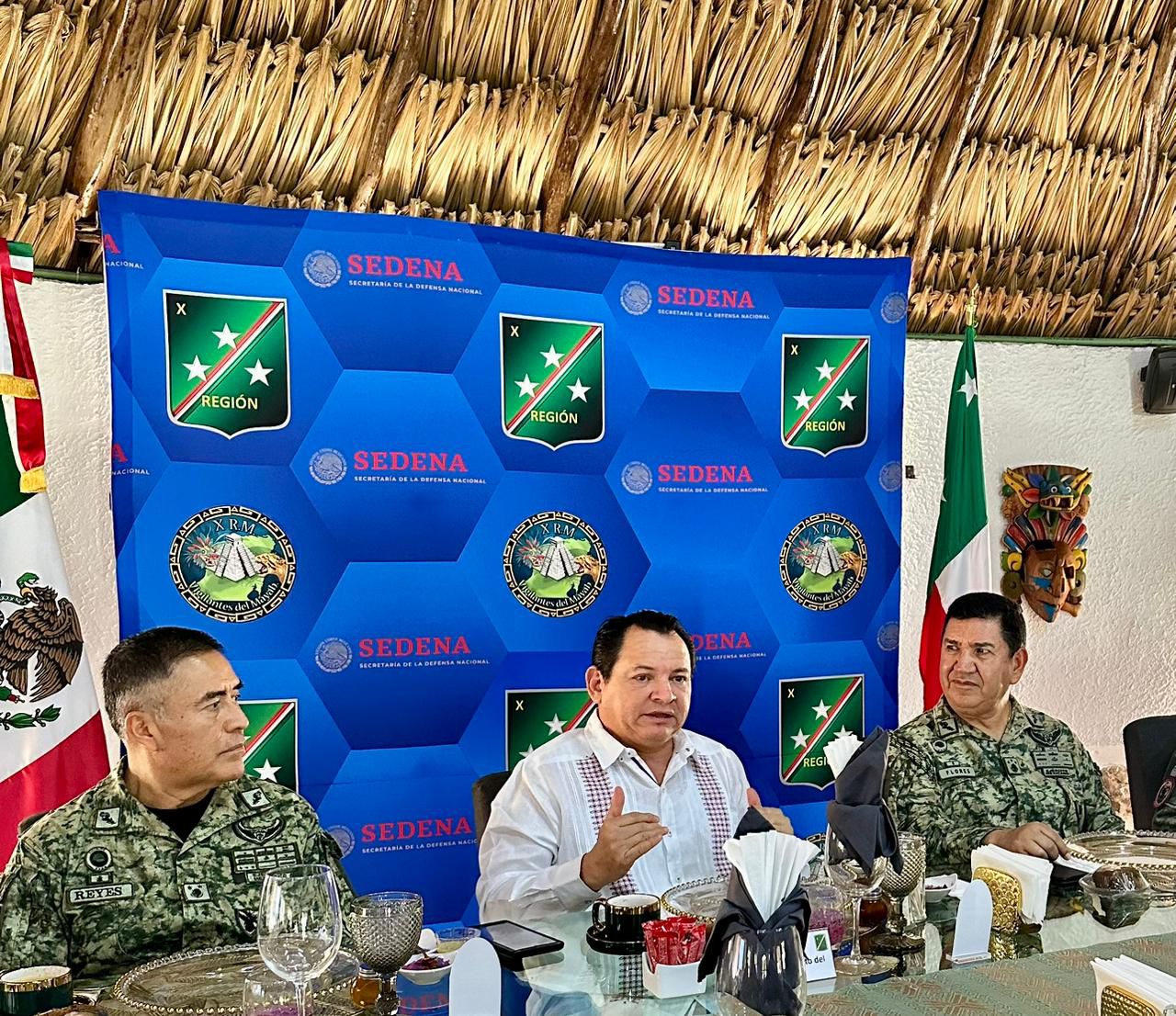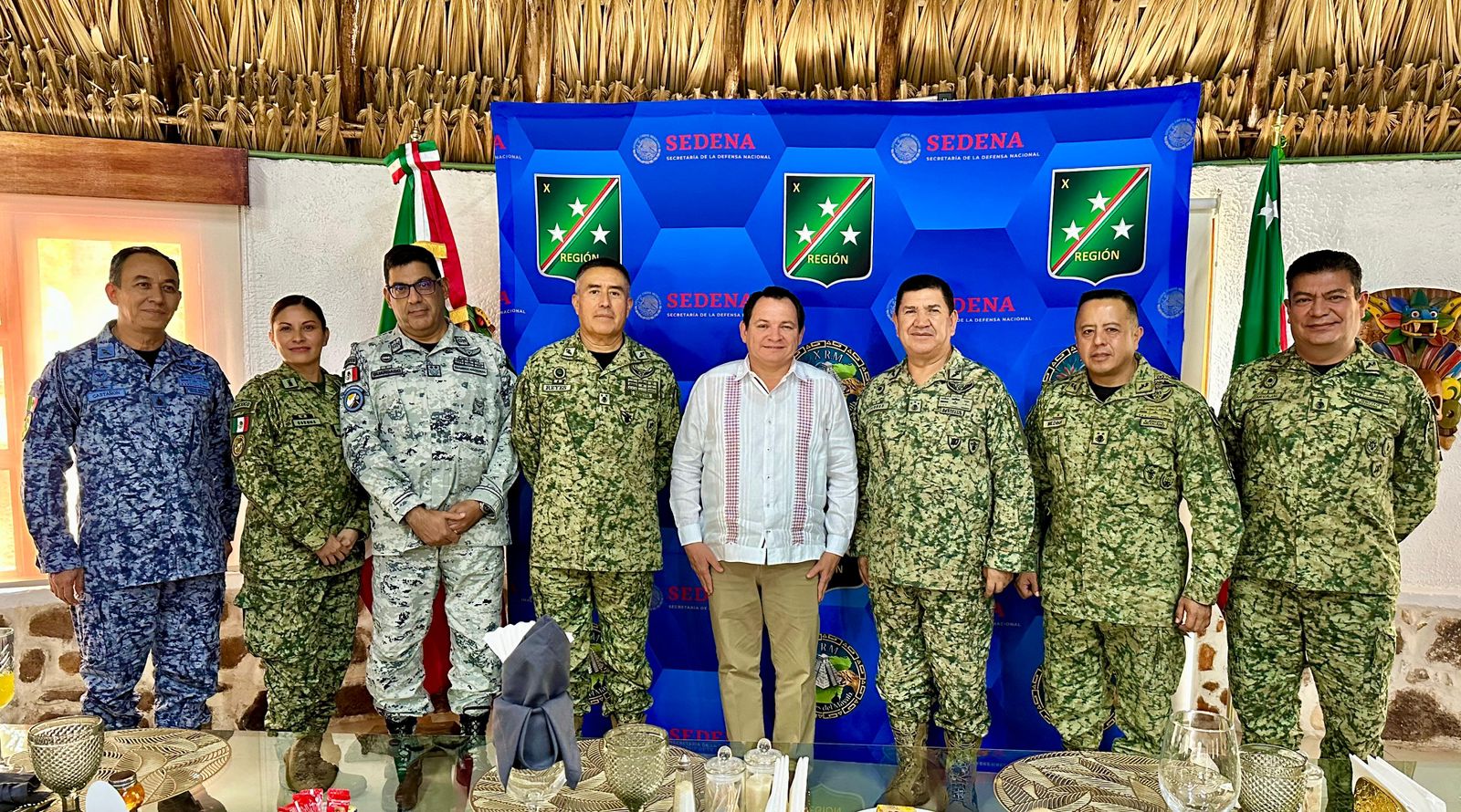 A la reunión asistieron el Gral. de División, Diplomado de Estado Mayor, Ricardo Flores González, Comandante de la X Región Militar; Gral. Brigadier, Diplomado de Estado Mayor, Bernardo Reginaldo Reyes Herrera, Jefe de Estado Mayor, X Región Militar; Gral. de Brigada de Estado Mayor, Jorge Enrique Martínez Medina, Comandante de la 32/a Zona Militar; Comisario Jefe, Ramón Guardado Sánchez, Coord. Estatal de la Guardia Nacional en Yucatán; Gral. de Grupo, Piloto Aviador, Diplomado de Estado Mayor Aéreo, Magdaleno Castañón Muñoz, Comandante de la Base Aérea Militar N° 8;  Gral. Brigadier, Médico Cirujano, Antonio Carvajal Gómez, Dir. del Hospital Militar Regional de Especialidades de Mérida; Coronel de Infantería, Diplomado de Estado Mayor, David Córdova Reynoso, Subjefe Operativo X Región Militar; Teniente Coronel Just. Mil. y Lic. Alejandro Martínez Reyes, asesor jurídico de la X Región Militar y; Teniente Coronel, Enfermera, Magda Corona Gutiérrez, Subdir. Centro de Rehabilitación Infantil…(OGY)