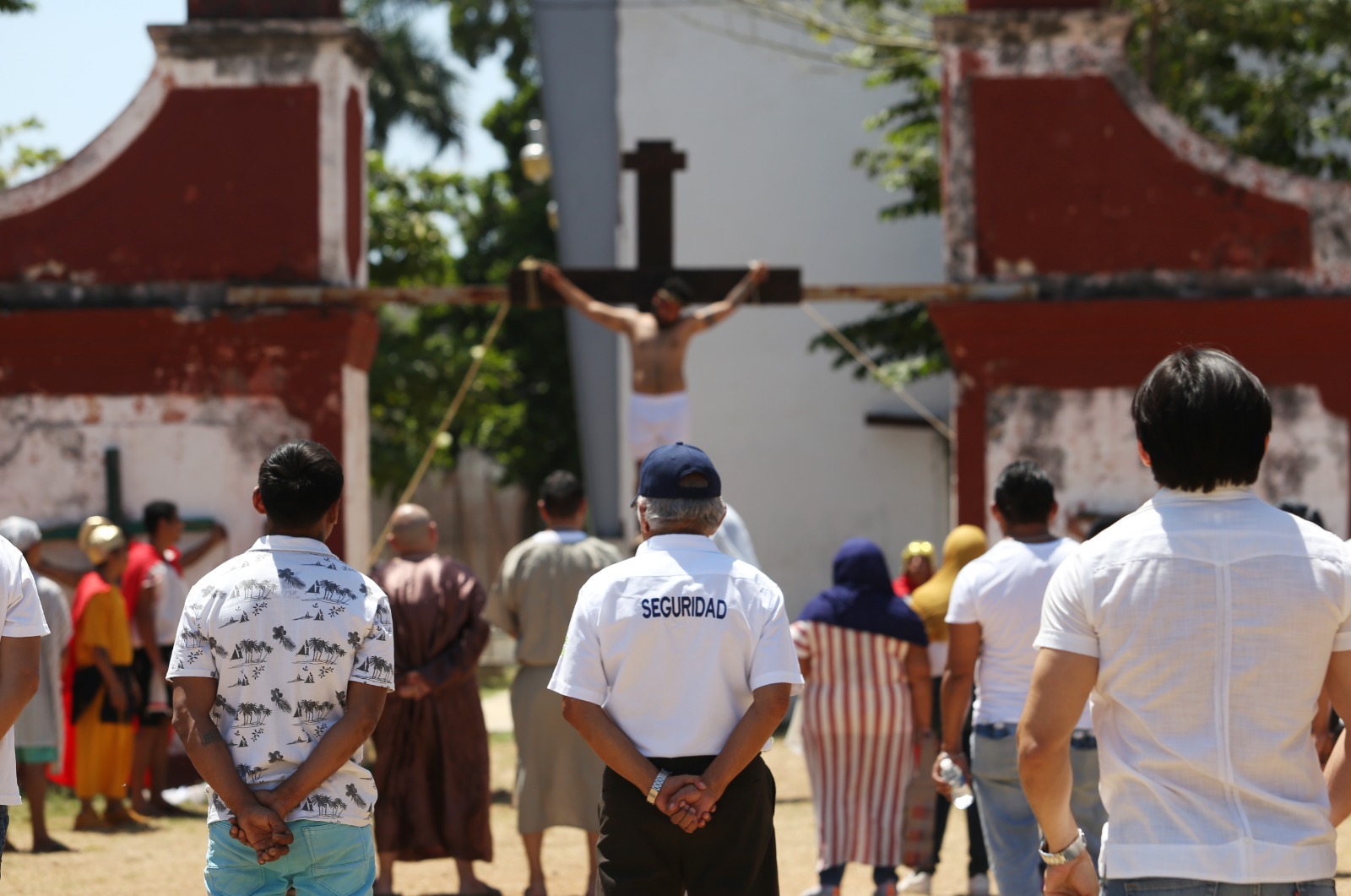 Personas Privadas de la Libertad (PPL) en el Centro de Reinserción Social (Cereso) de Mérida escenificaron los últimos momentos que vivió Jesucristo en su camino a la cruz.
