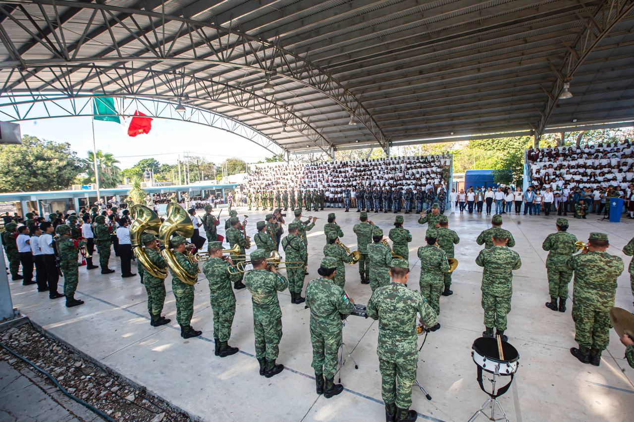 La ceremonia cívica contó con la destacada participación de la banda de música de la X Región Militar, quienes interpretaron la marcha “Patria Mía”, así como el himno nacional y en el cierre, “Cielito Lindo”.