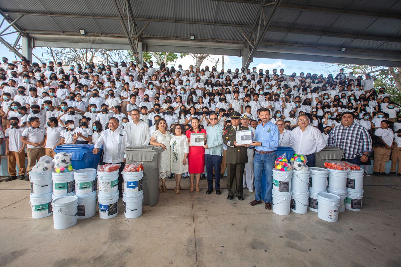 Al finalizar los honores de la bandera en conmemoración del natalicio de José Vasconcelos, las autoridades cortaron el listón y recorrieron el taller de informática en donde Vidal Aguilar, a solicitud de la directora del plantel y el comité de padres de familia, autorizó la entrega de 10 computadoras para el turno matutino y 5 para el turno vespertino. Asimismo, hizo entrega de kits del programa “Mejora tu secu” a los directores de ambos turnos.En el acto también participó el rector de la Universidad Autónoma de Yucatán, Dr. Carlos Estrada Pinto, el Teniente Coronel de la Base Aérea No. 8 Gildardo López Pérez; el Capitán de Corbeta,José Constantino Salgado; el enlace federal con la SEP, Juan Balam Varguez; la directora de Educación Secundaria, Brenda Ruz Durán y la directora de la escuela sede, Emily Barahona Pereira…(OGY)