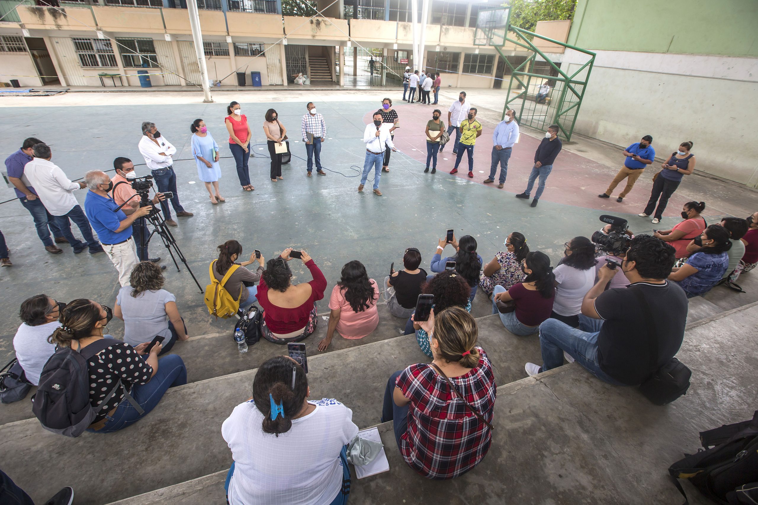 El secretario de Educación del Gobierno del Estado de Yucatán, Liborio Vidal Aguilar, informó en una reunión con la comunidad escolar de los turnos matutino y vespertino que el gobernador Mauricio Vila autorizó la rehabilitación total de la escuela.