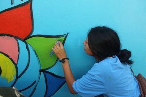 La realización del mural estuvo a cargo de la artista Rosalba Rosales Gonzáles quien guio a los padres de familia a dibujar y dar color a toda la pared principal del plantel educativo, a fin de que los participantes pusieran a prueba su creatividad. Asimismo, se exploró la combinación de colores primarios para crear otros colores.