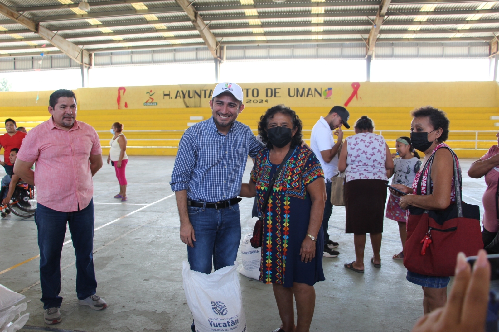 El Presidente Municipal de Umán, Dr. Gaspar Ventura Cisneros Polanco encabezó la repartición de los sacos de maíz que equivalen a 20 kg cada uno y es de autoconsumo, cabe destacar que este producto fue destinado a familias vulnerables de la cabecera municipal, fraccionamientos y colonias.