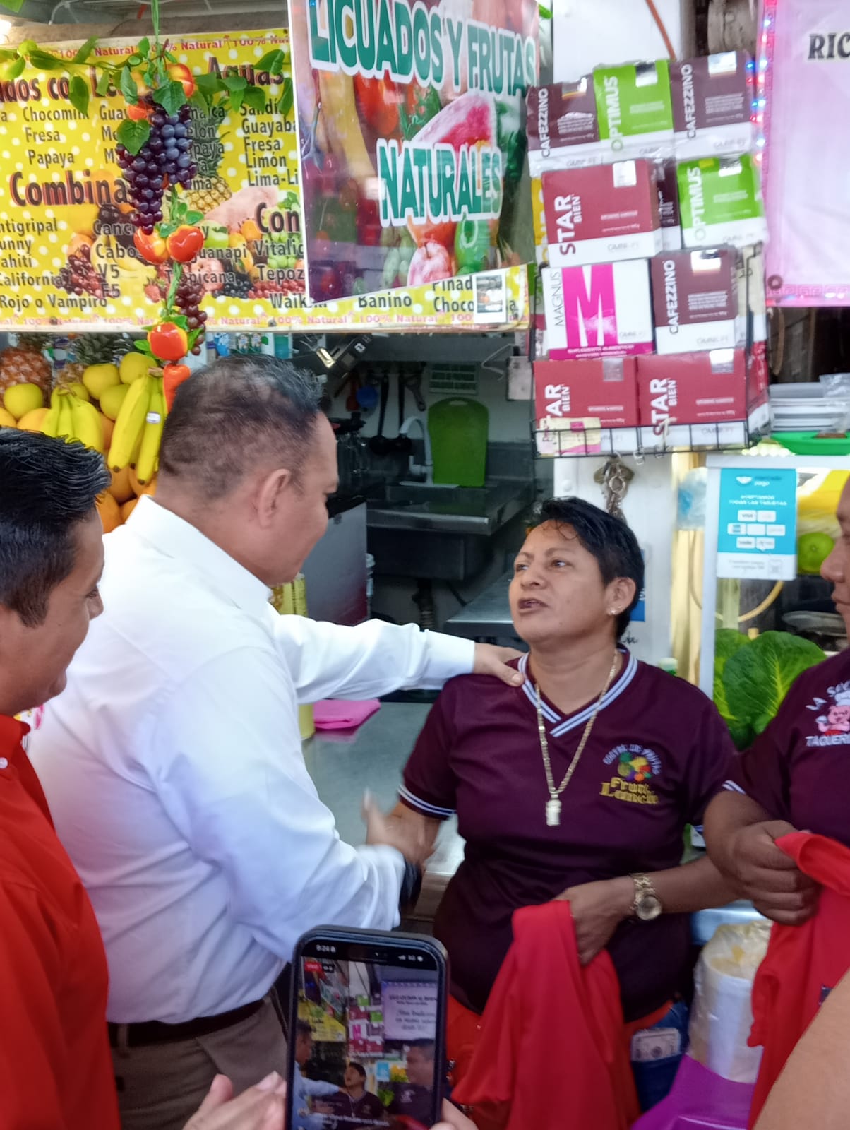 En el octavo día de su cruzada, llegó al mercado de la Colonia Mulsay, donde saludó a los locatarios y conoció de manera directa su problemática y necesidades.