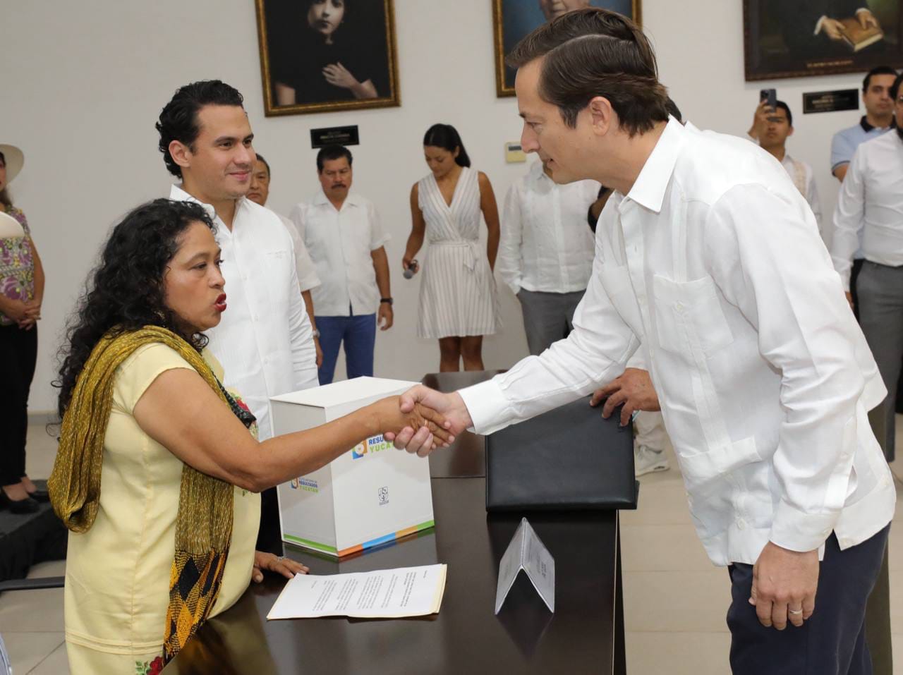 Por instrucciones de Fritz Sierra y en cumplimiento a lo dispuesto por la Ley, el encargado del Despacho de la Secretaría General de Gobierno (SGG), José Carlos Puerto Patrón y el Consejero Jurídico del estado, Yussif Heredia Fritz, entregaron a la presidenta de la Mesa Directiva de la actual legislatura, Neyda Pat Dzul, el documento que además de la versión en español también está en lengua maya y Braille.