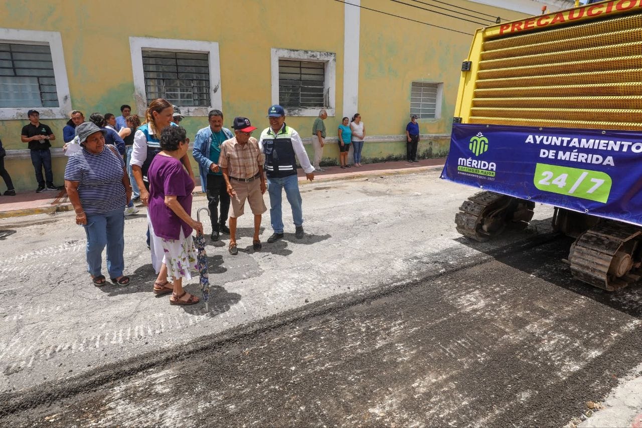 Como parte de las acciones de supervisión de repavimentación de calles, la presidenta también acudió a la calle 54 por 87 en la colonia Centro donde se rehabilitan más de 2 kilómetros de asfalto. Los trabajos abarcan desde la calle 95 hasta la 59.